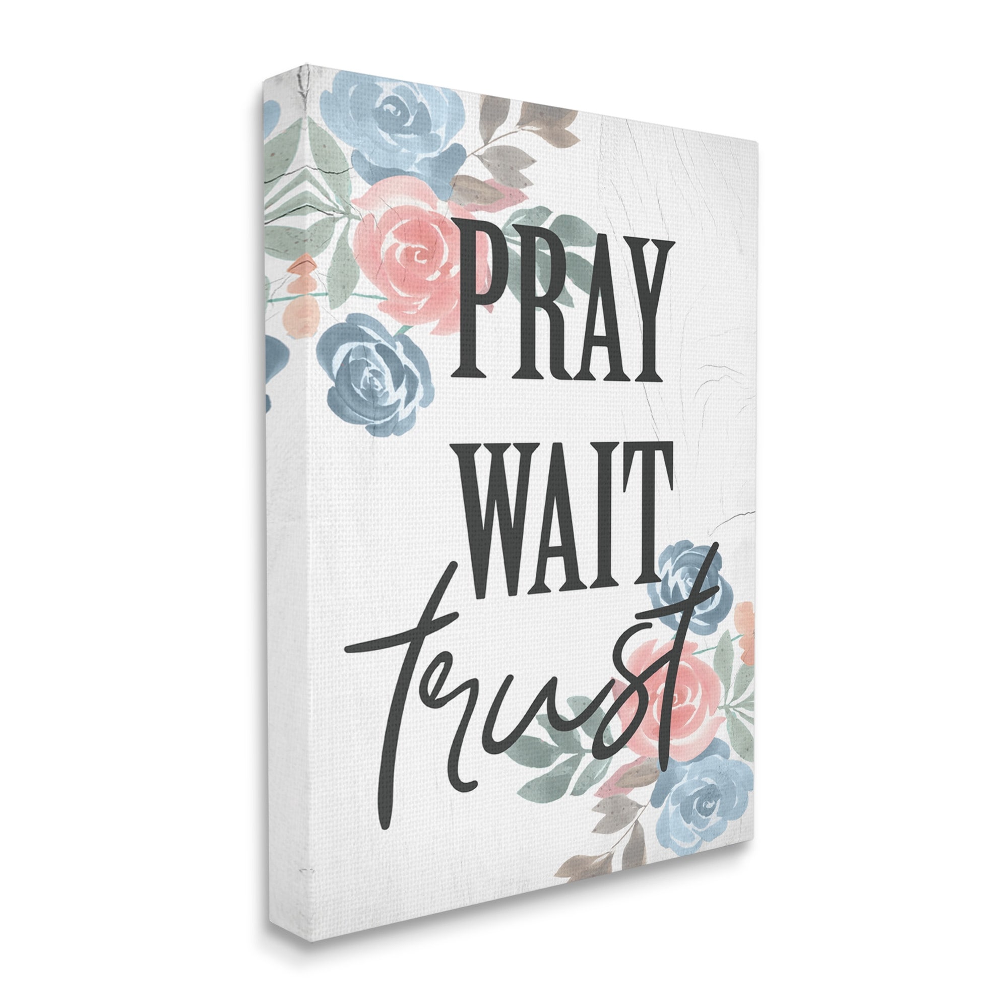 Stupell Pray Wait Trust Phrase Blue Pink Roses Canvas Wall Art - White