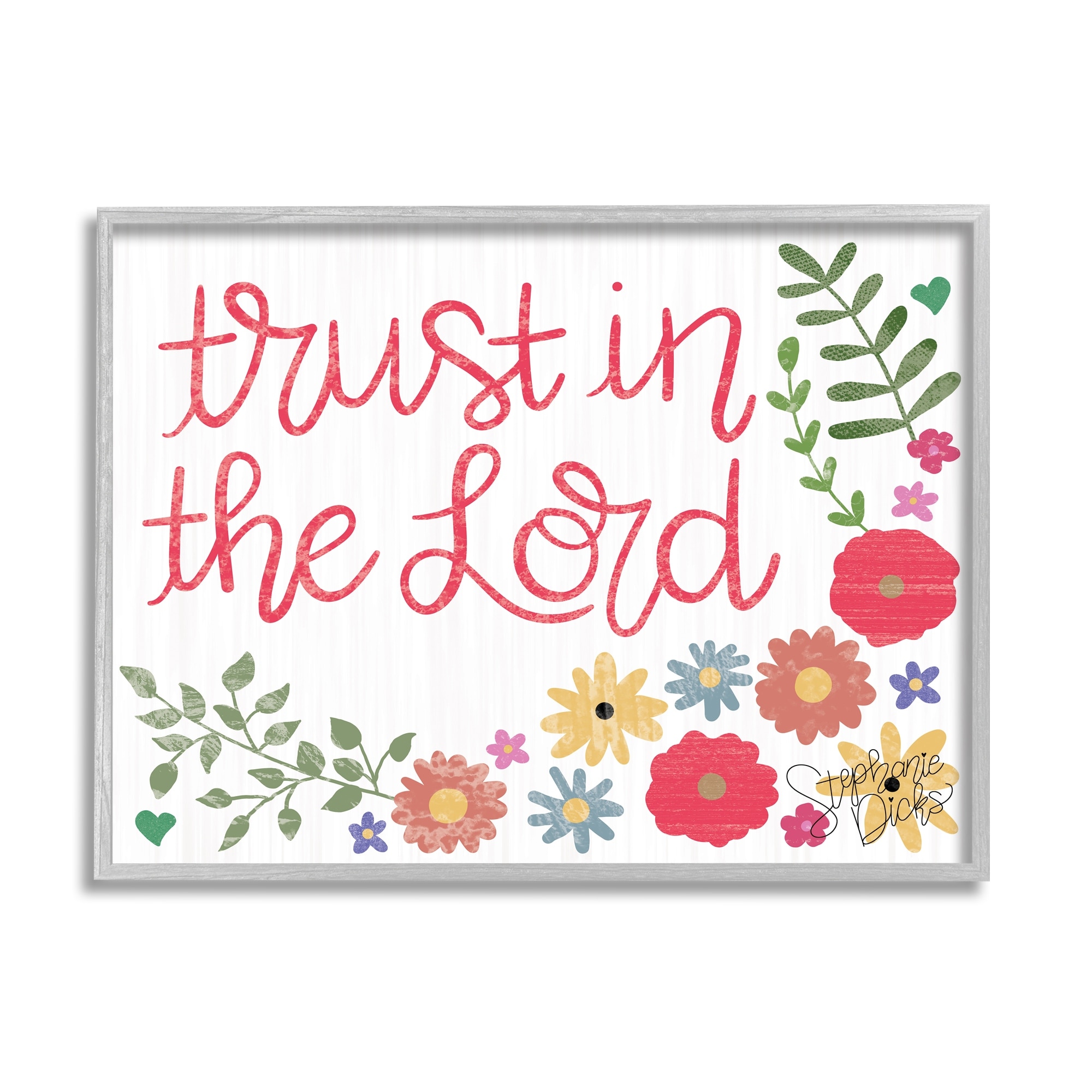 Stupell Trust the Lord Religious Calligraphy Cute Florals Framed Wall Art - White