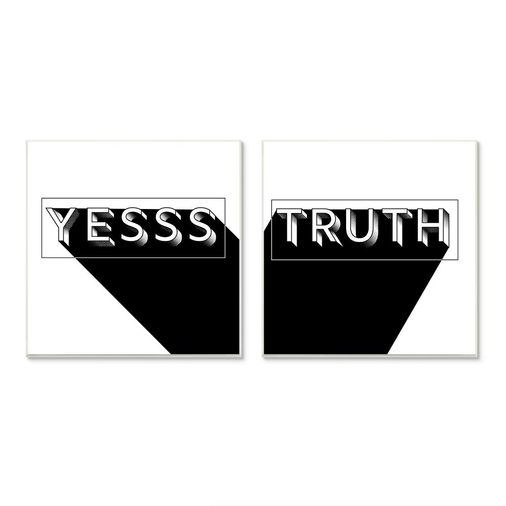 Stupell Industries Yes Truth Bold Pop Typography Black White 2pc Multi Piece Wood Wall Art Set,12x12