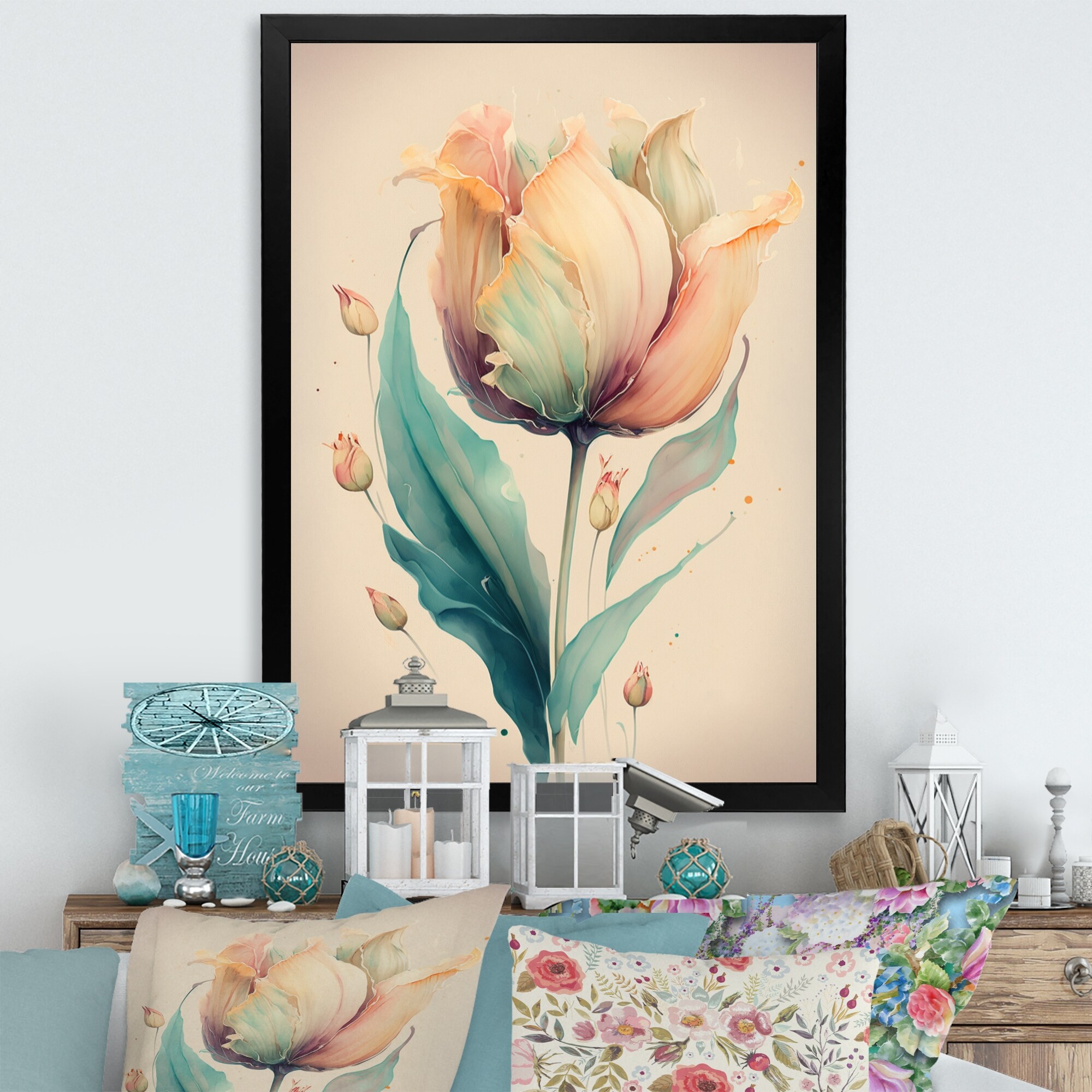 Designart "Soft Tone Tulip" Floral & Botanical Framed Art Print