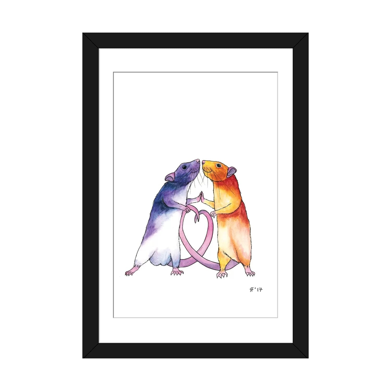 iCanvas "Valentines Rat Card" by Alasse Art Framed