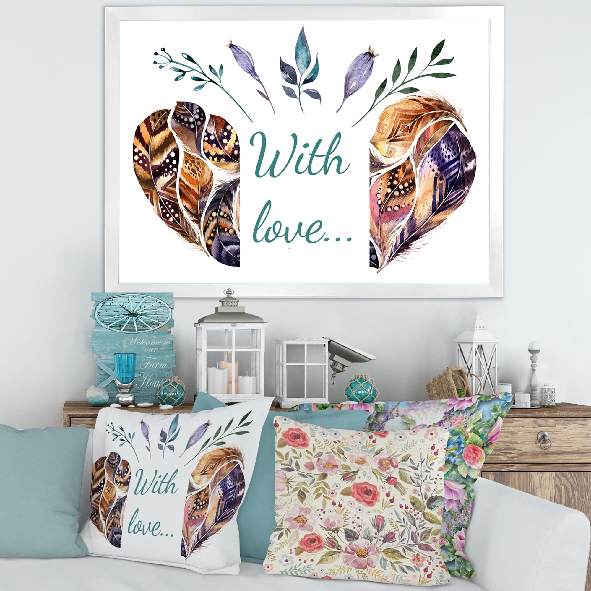 Designart "Hearted Shaped Valentine Feathers" Traditional Framed Art Print