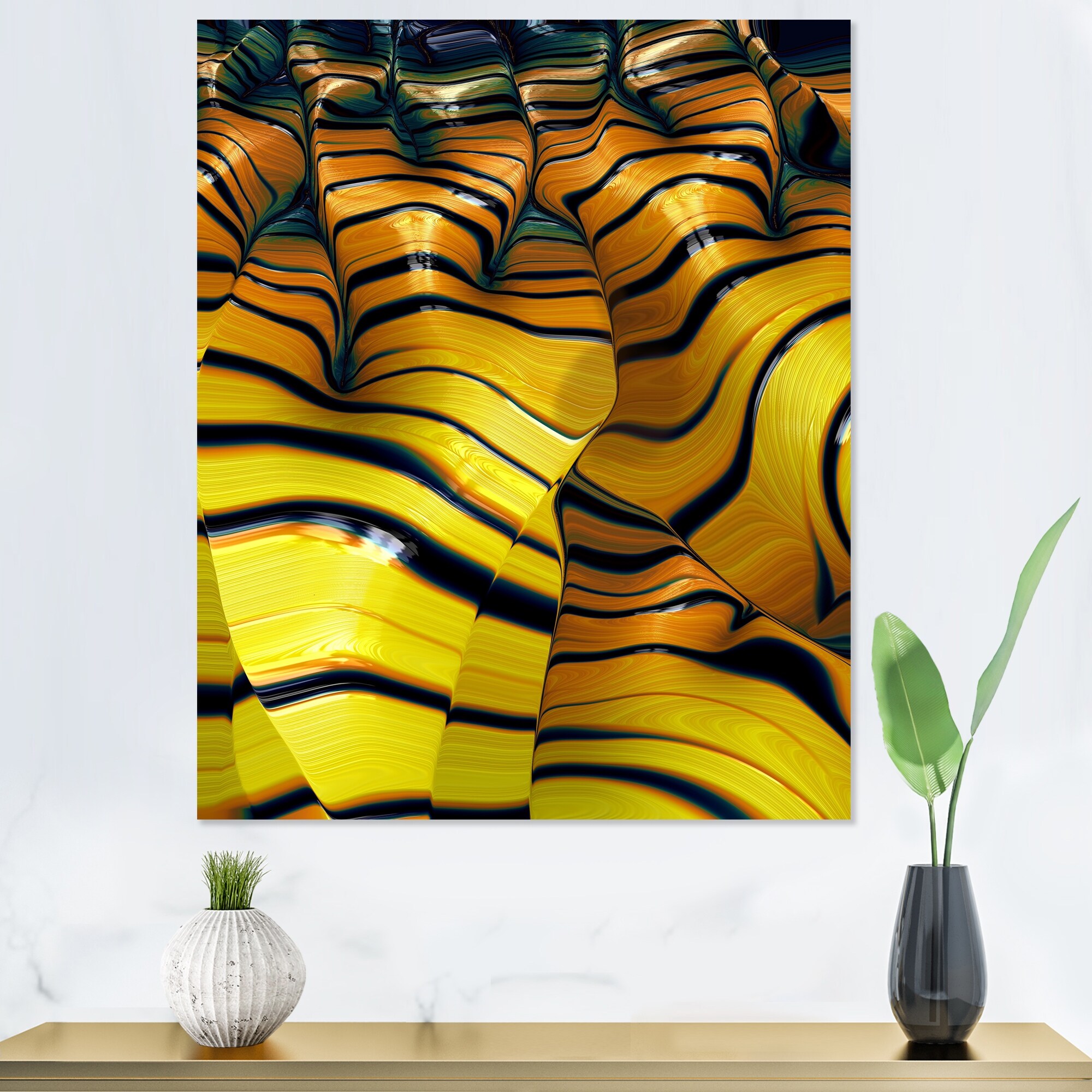 Designart "Yellow Fluid Art Organic Vortex" Modern Framed Wall Decor