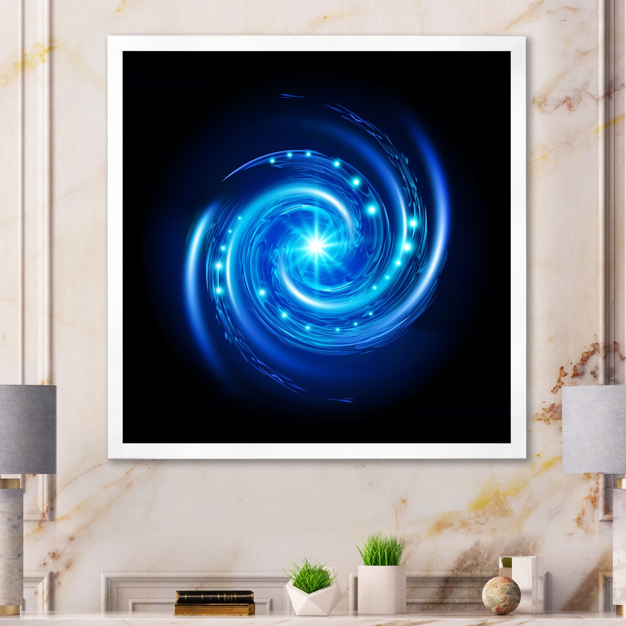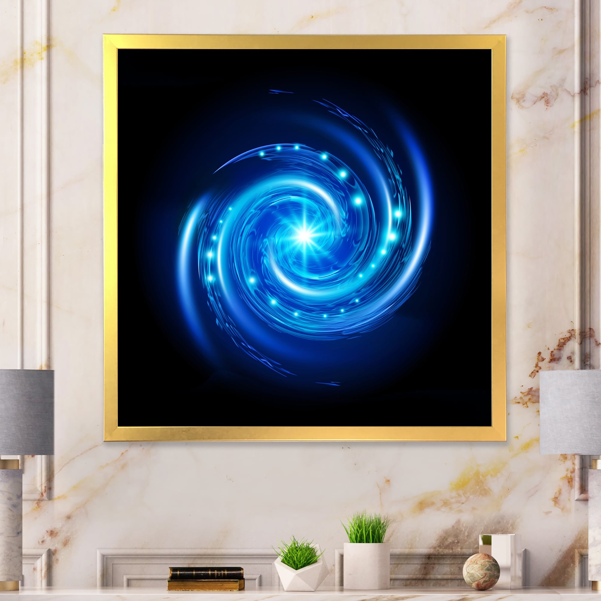 Designart "Blue Vortex" Modern Framed Wall Decor