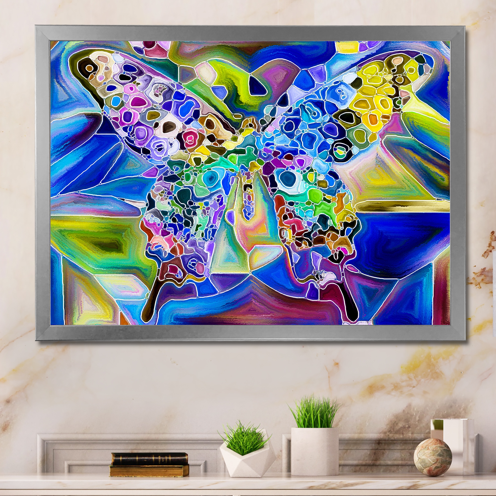 Designart "Butterfly Colors Vortex" Modern Framed Art Print
