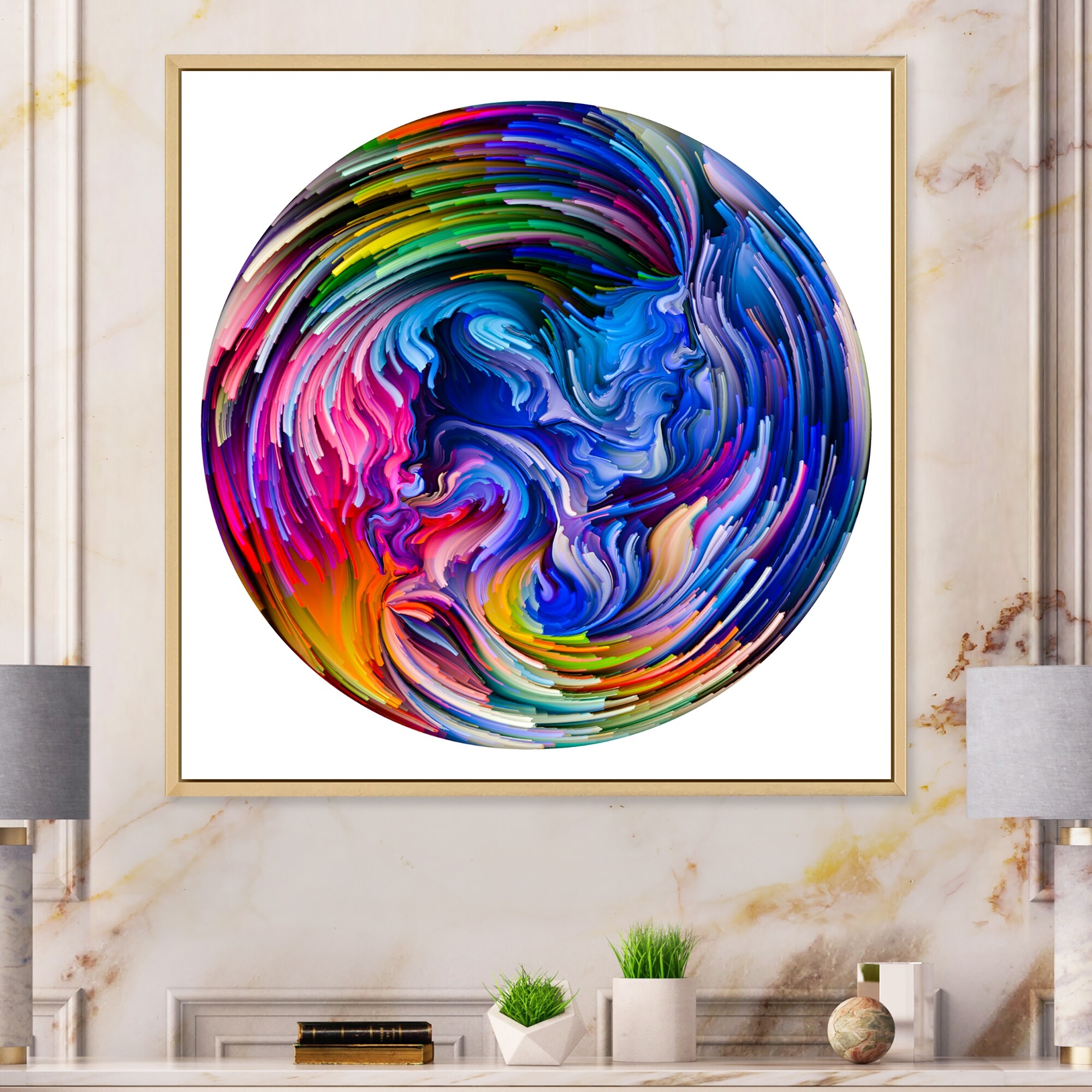 Designart "Abstract Vortex Color Circle" Modern Framed Wall Art