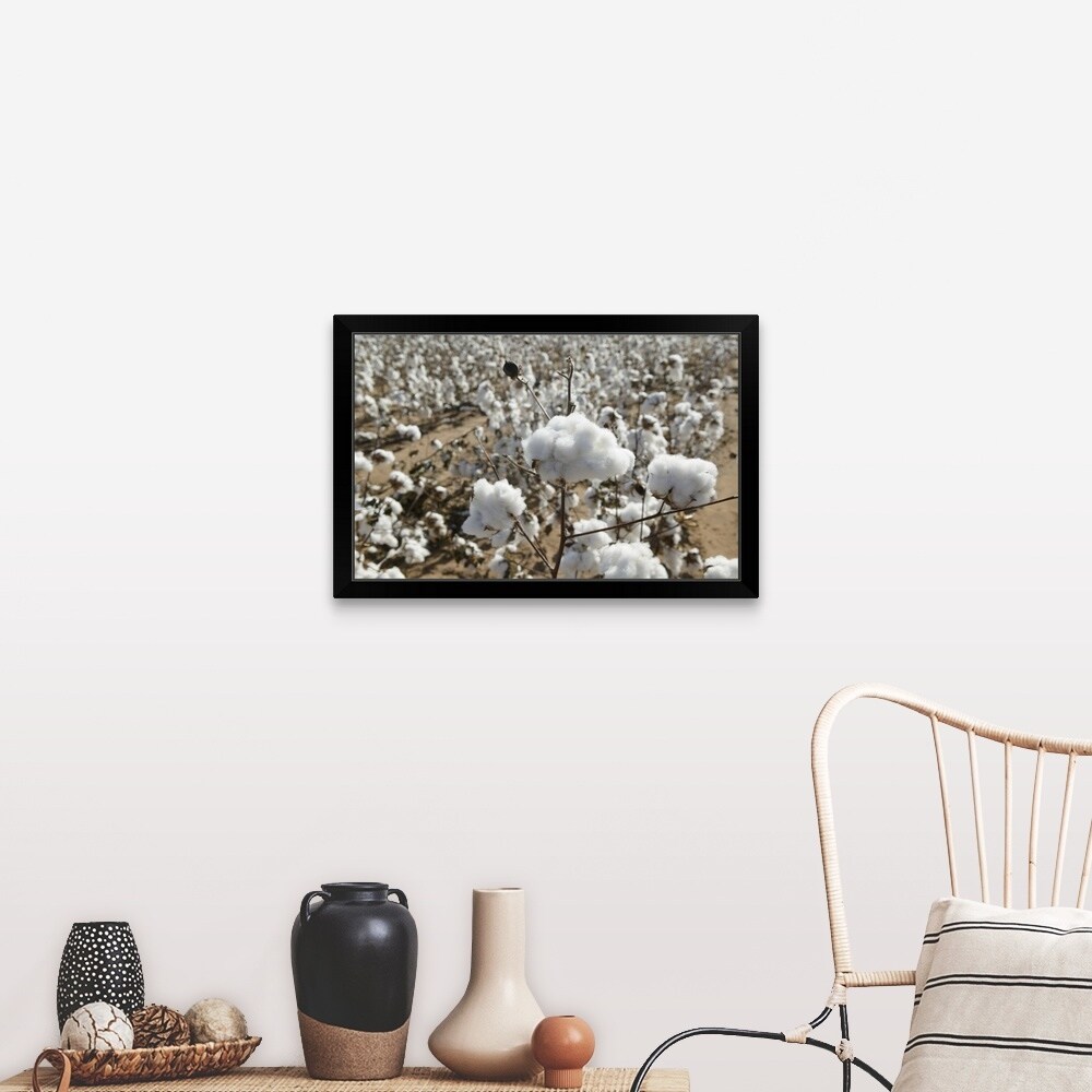 "Close-up of cotton plants in a field, Wellington, Texas" Black Framed Print