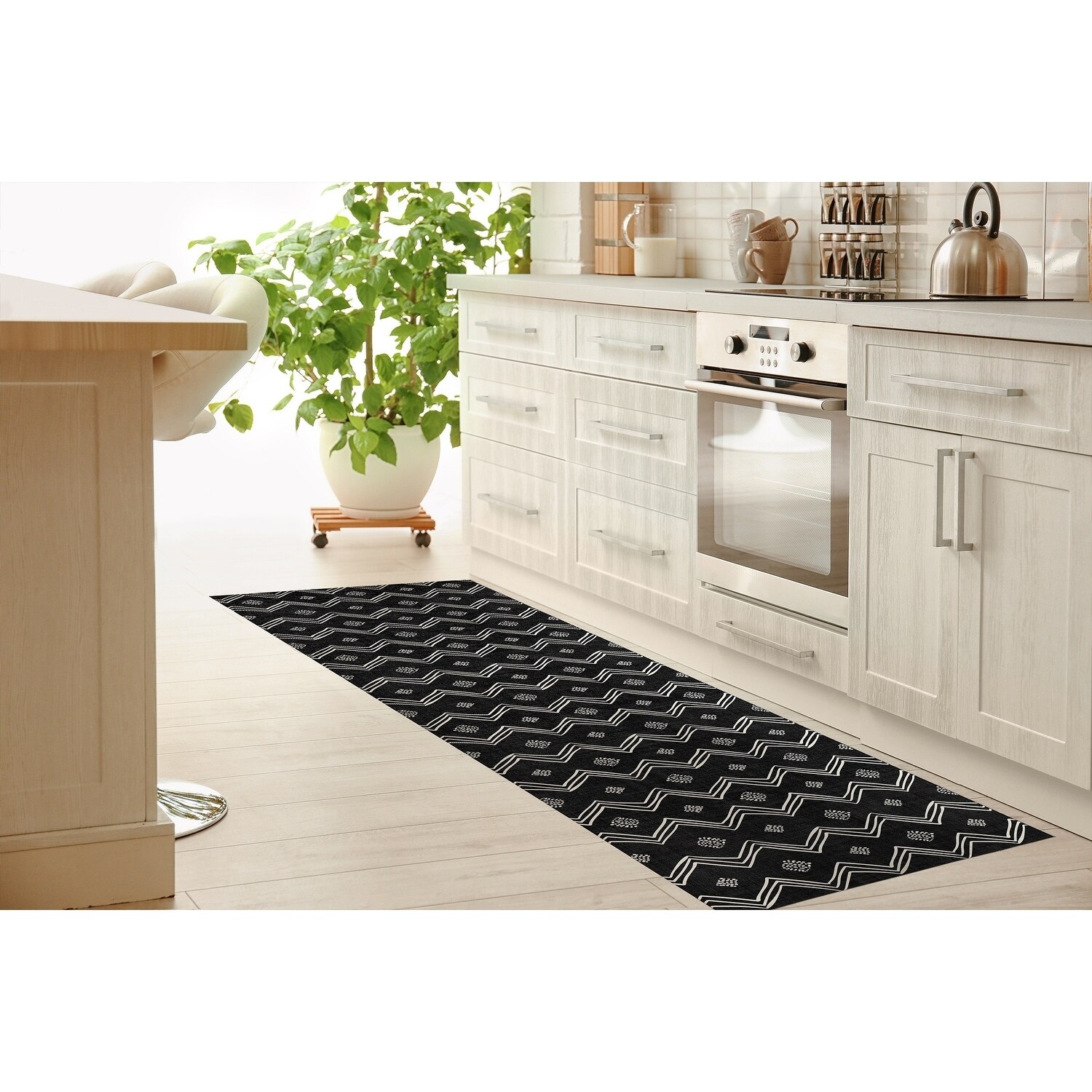 VILLAGE BLACK & WHITE Kitchen Mat By Kavka Designs