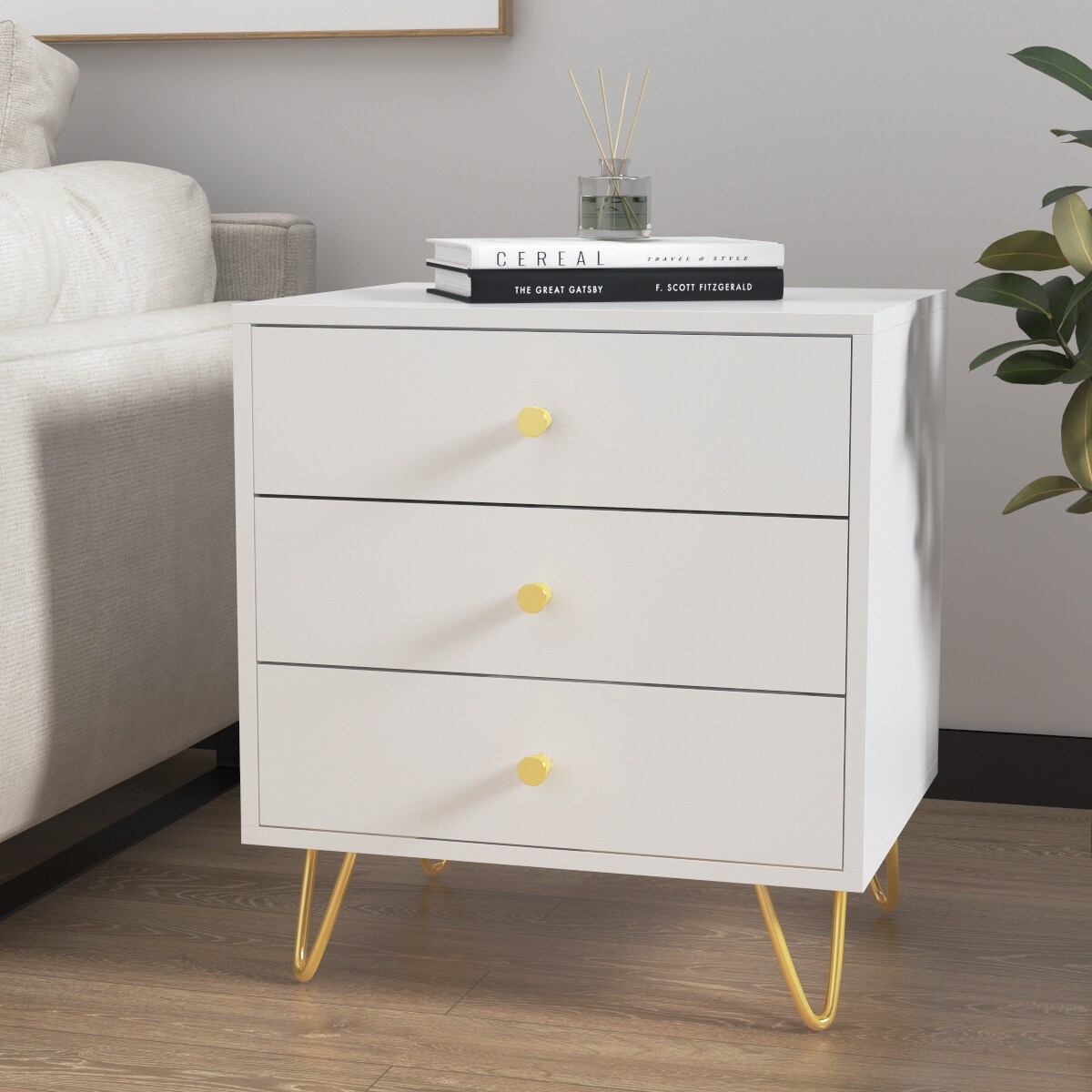 21.6'' Tall 3 - Drawer Nightstand White/Grey/Black (1 Piece)