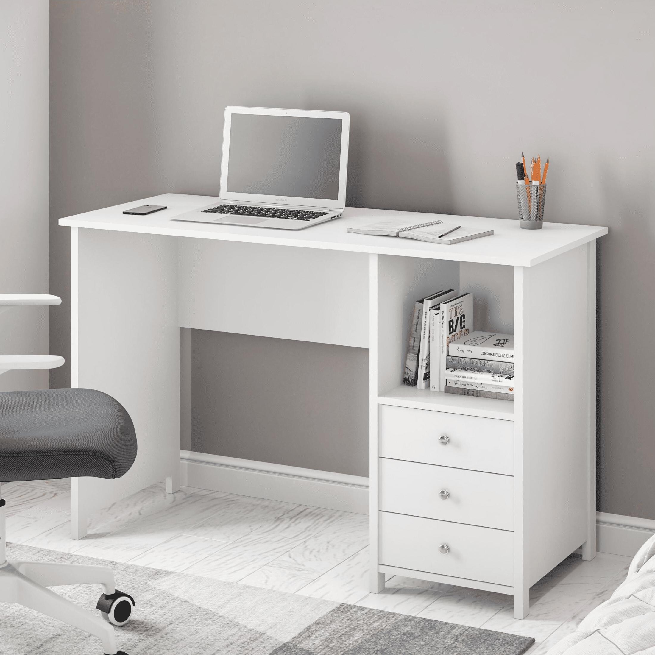 Contemporary Desk with 3 Storage Drawers, White