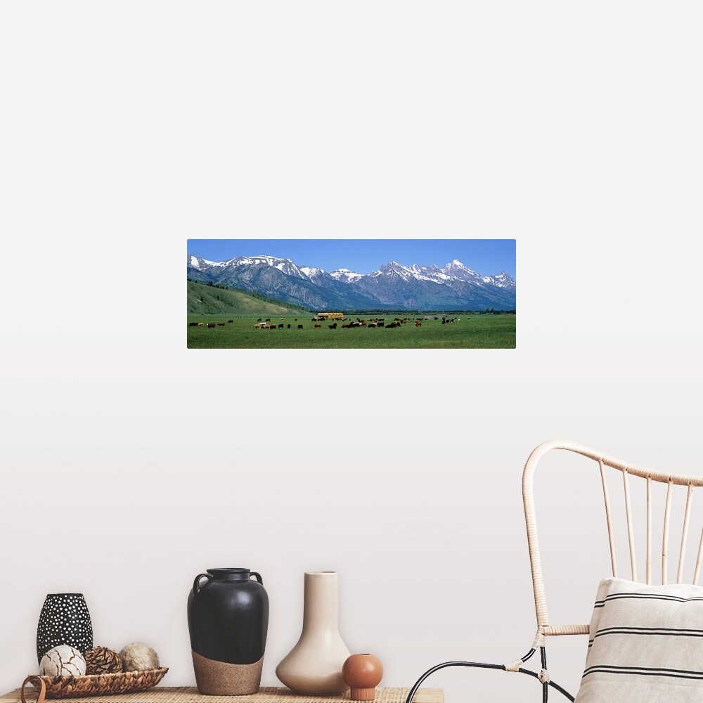 "Cattle and Teton Range Jackson Hole WY" Poster Print