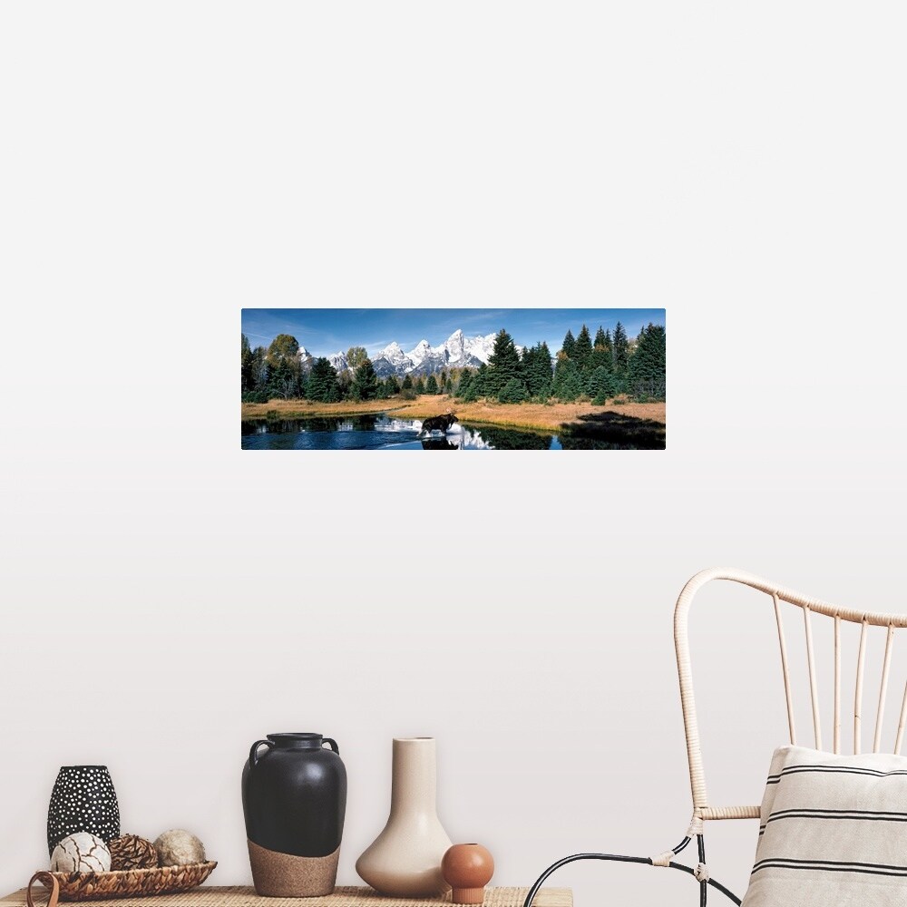 Easy Art Prints Panoramic Images's 'Moose & Beaver Pond Grand Teton National Park WY USA' Premium Canvas Art