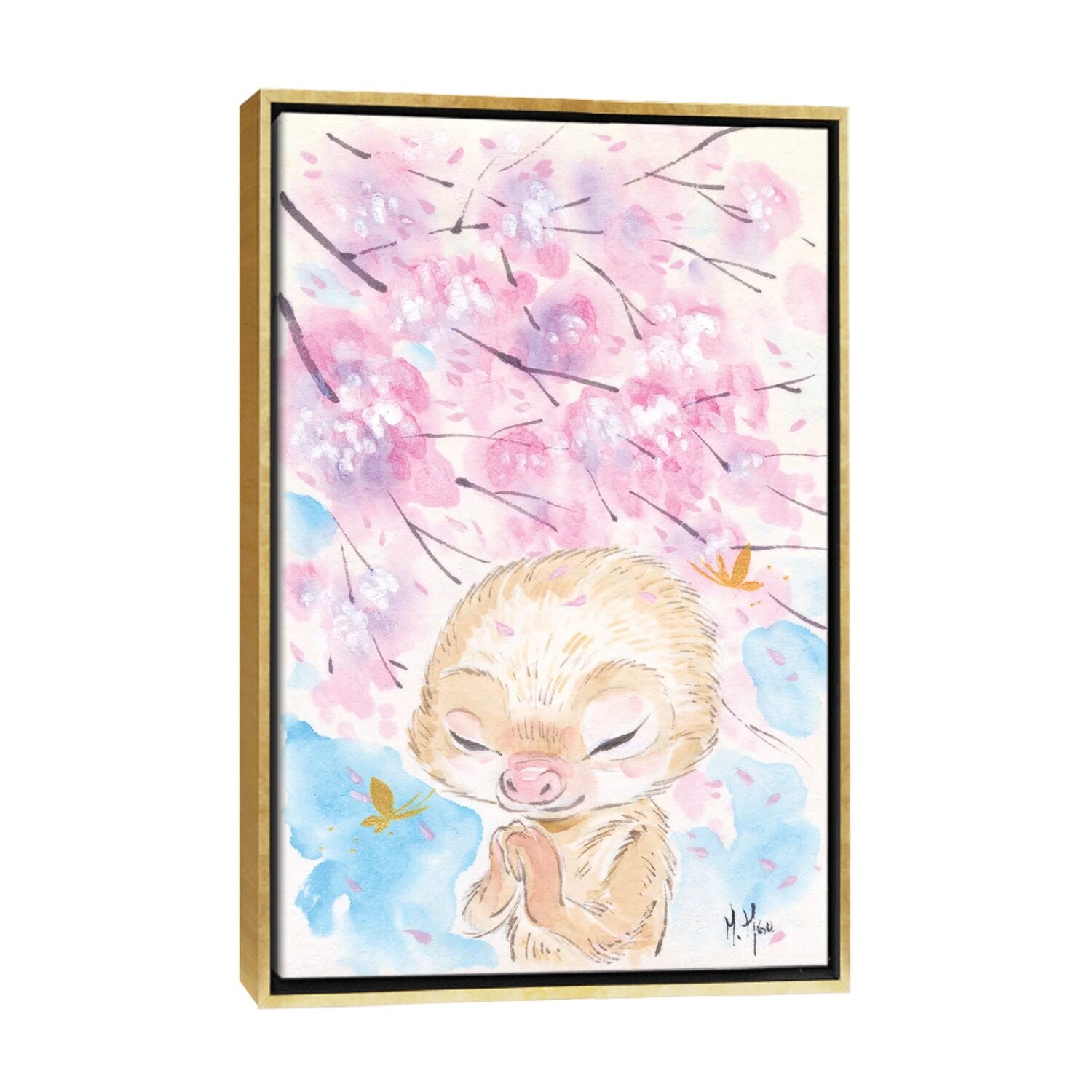iCanvas "Cherry Blossom Wishes - Sloth" by Martin Hsu Framed