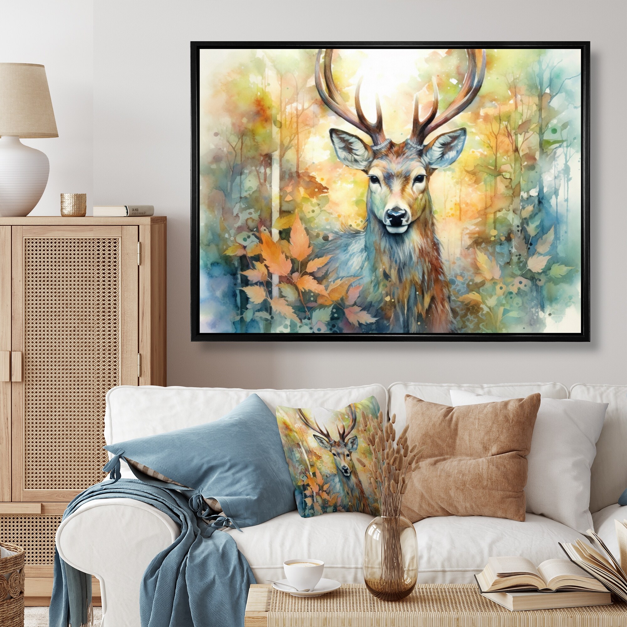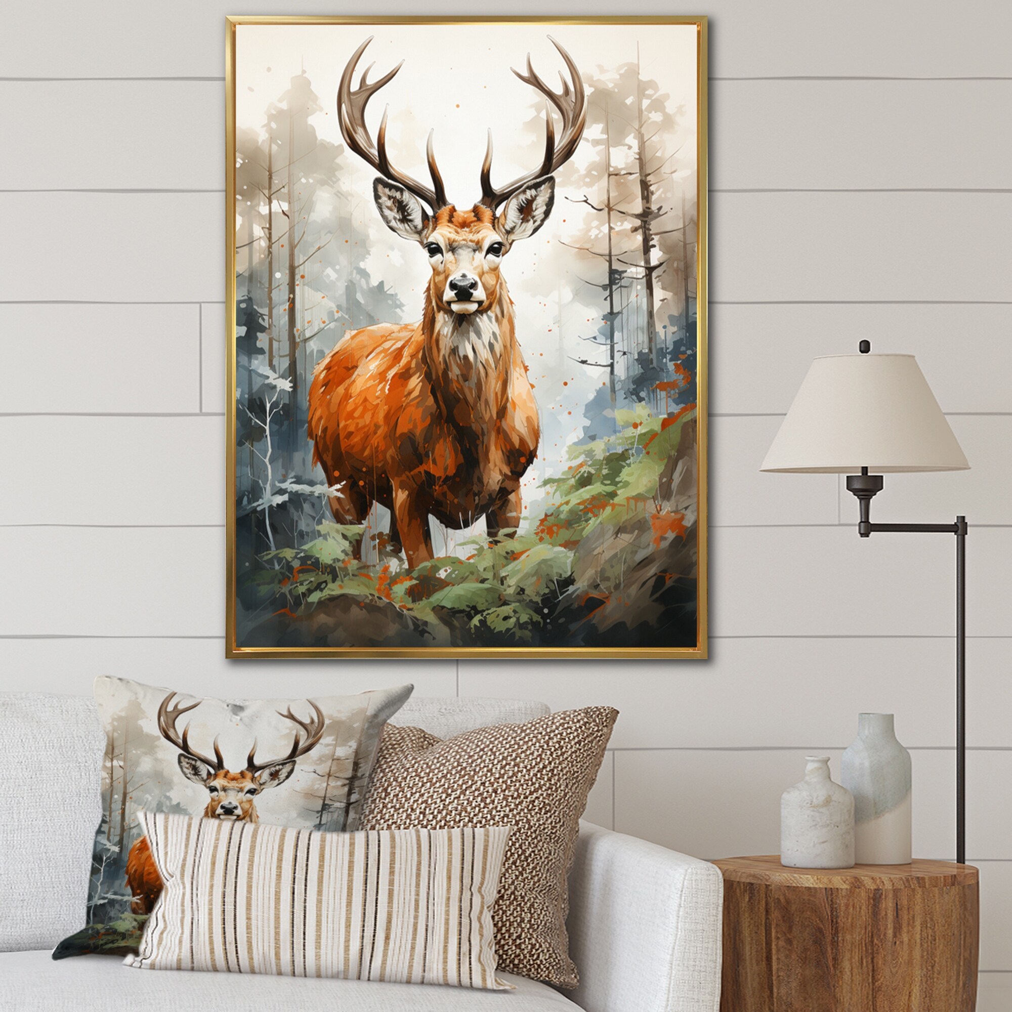 Designart "Deer Wonderers I" Animals Deer Framed Canvas Prints