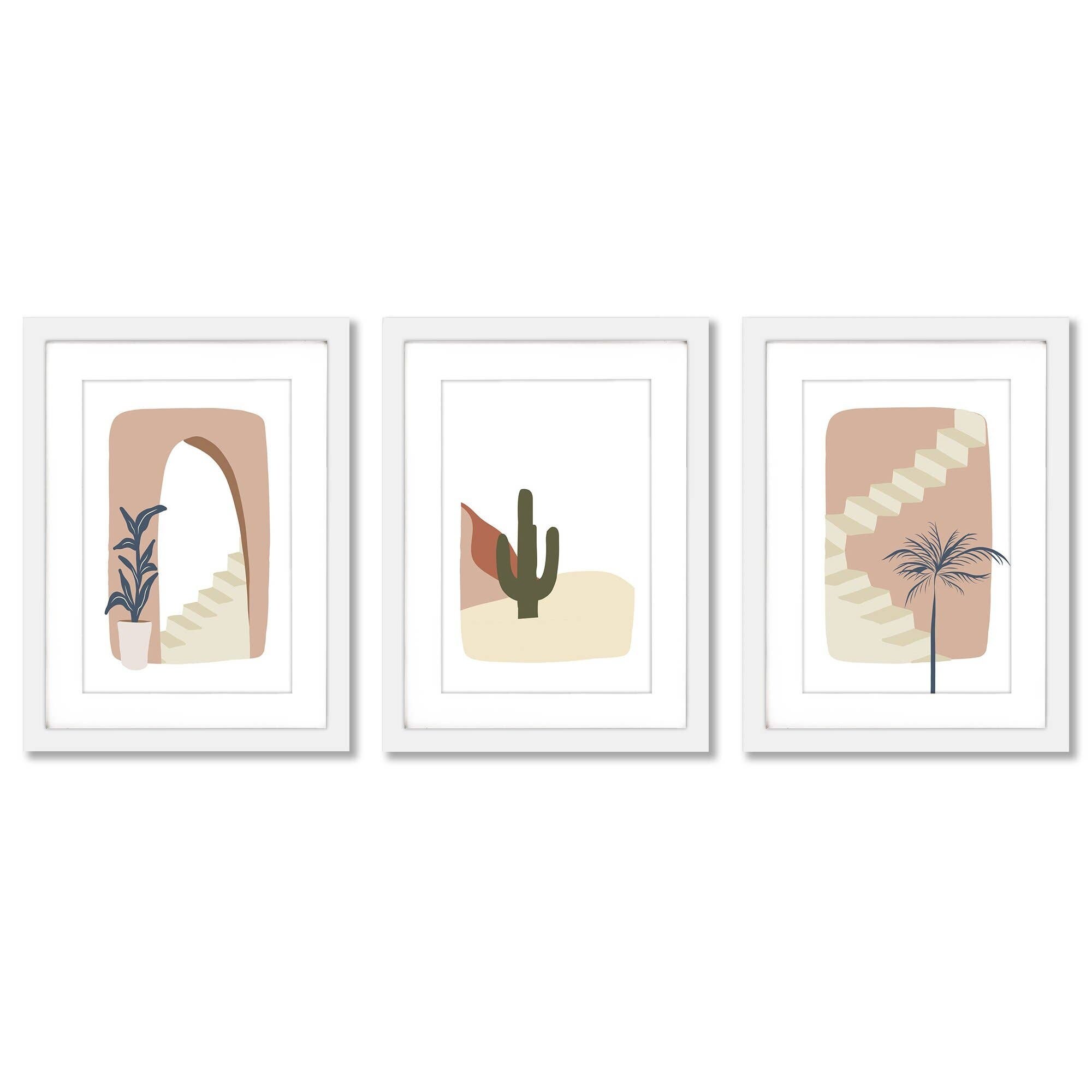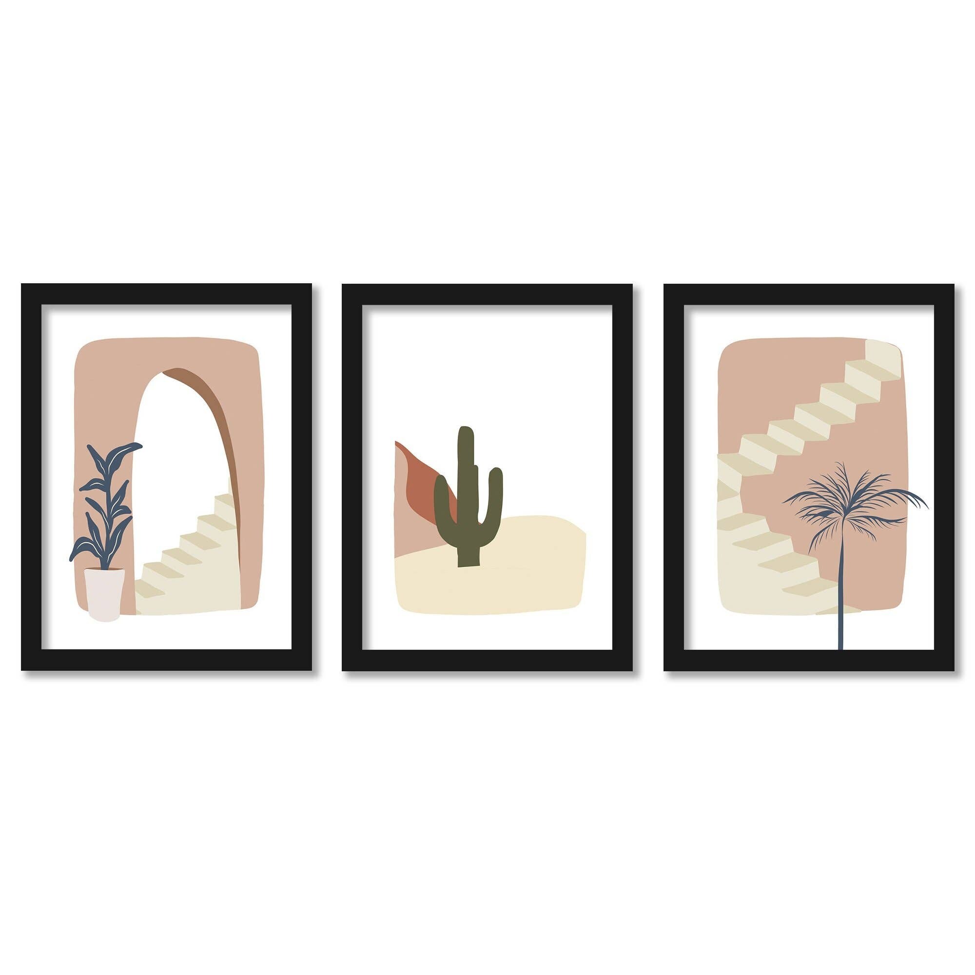 Pink Staircase Wall + Wonder Contemporary - 3 Piece Framed Gallery Art Set