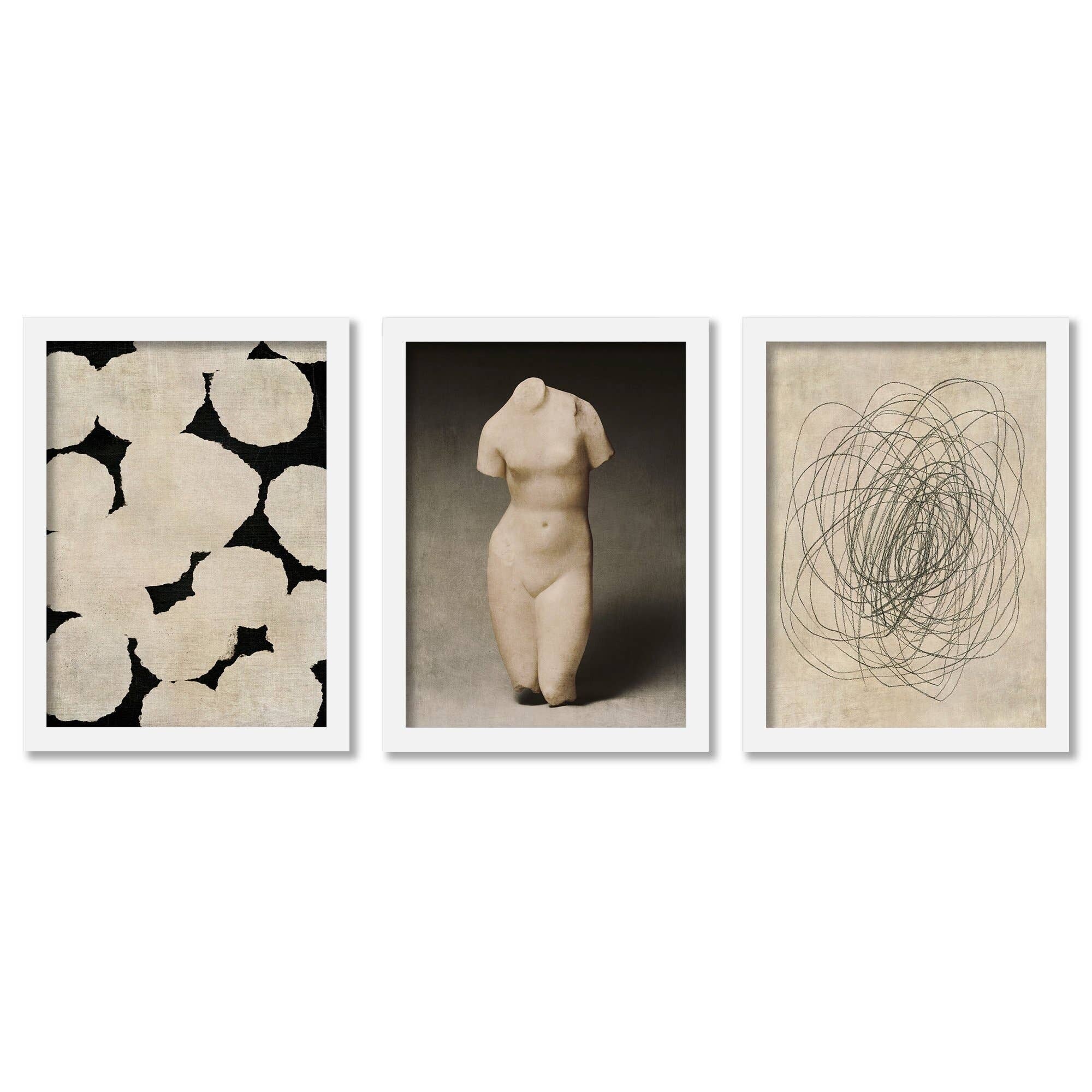 Aphrodite Scribble Chaos & Wonder Design Contemporary - 3 Piece Framed Gallery Art Set