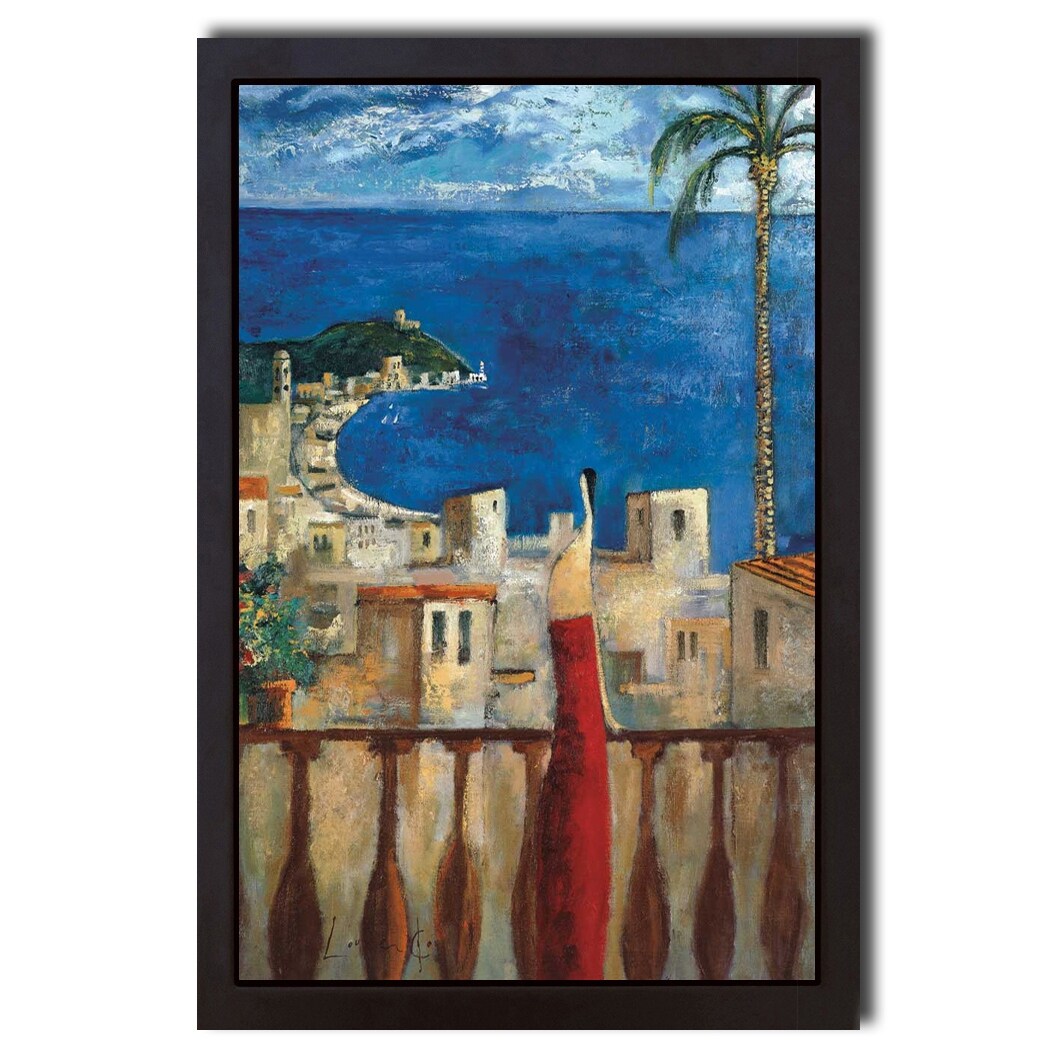 Blue Afternoon by Didier Lourenco Black Floater Framed Canvas Art (27 in x 18 in)