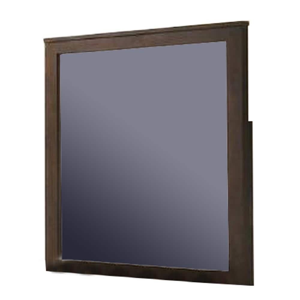 Wooden Mirror with Raised Frame and Molded Details - Brown - 36 H x 42 W x 3 L Inches
