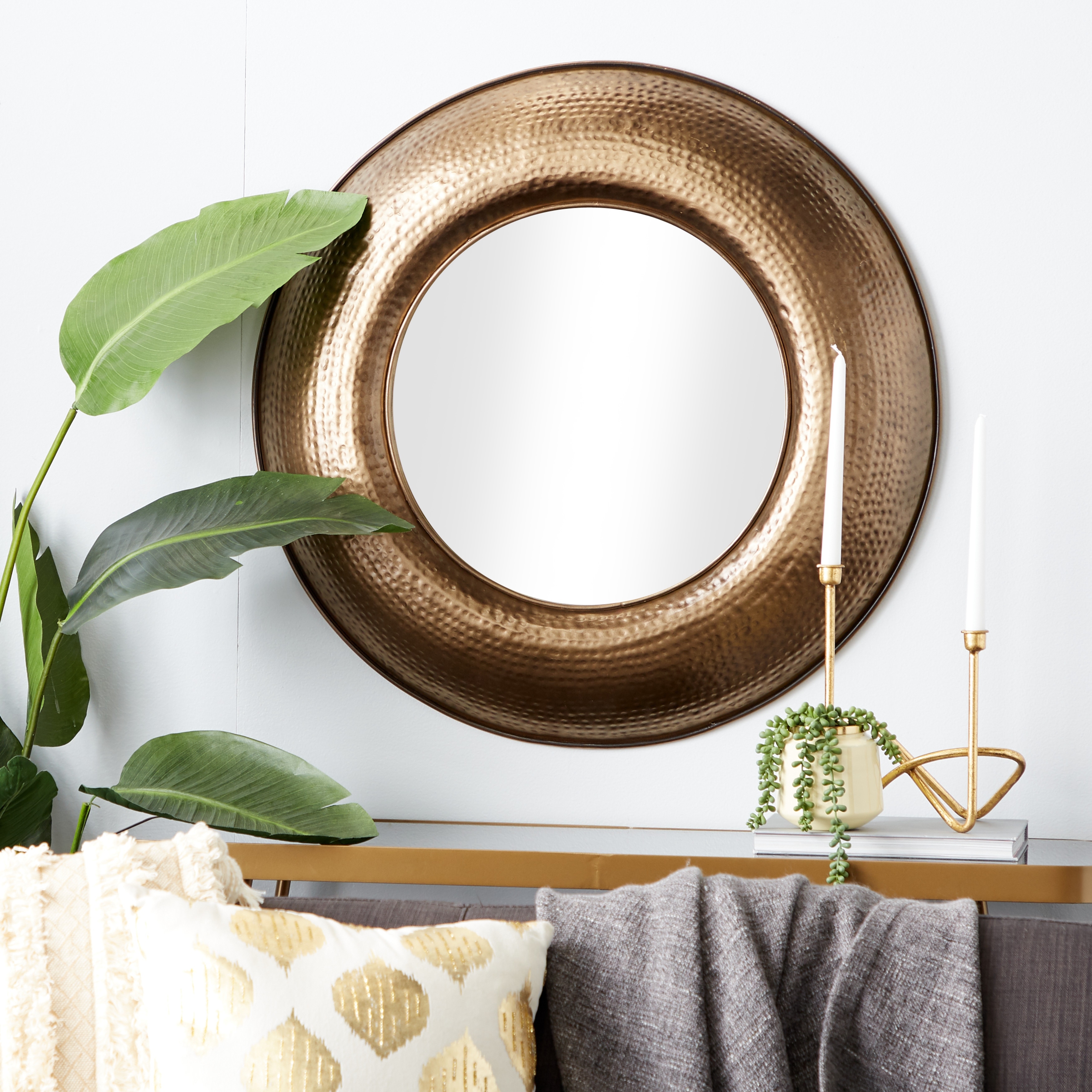 Bronze Iron Modern Wall Mirror 32 x 32 x 3 - 32 x 3 x 32Round