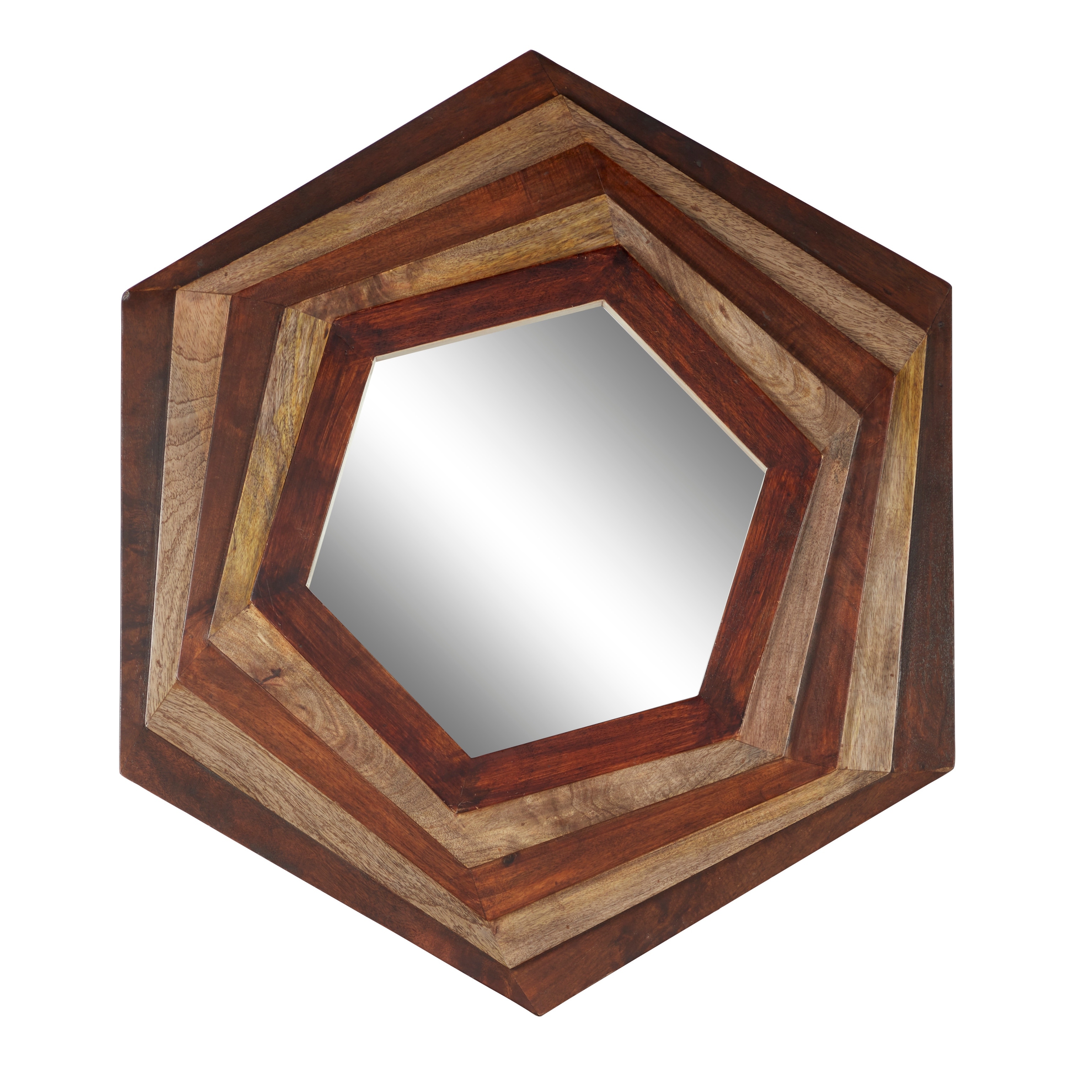 Large Hexagon Multi Layered Wood Wall Mirror 32 X 35 - 32 x 3 x 36