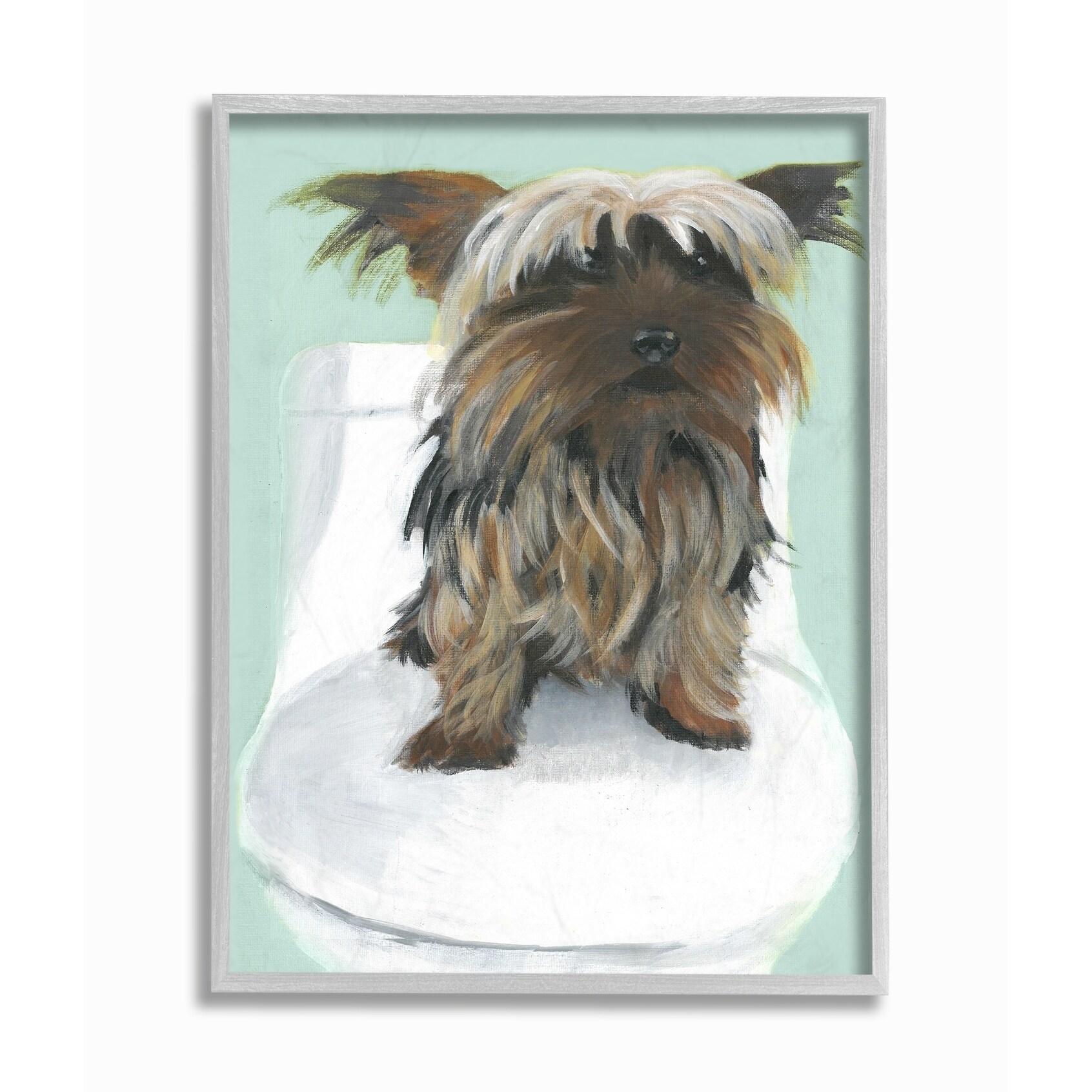 Stupell Industries Yorkie in the Bathroom Illustration Grey Framed, 16 x 20, Design By Artist Daphne Polselli - 16 x 20