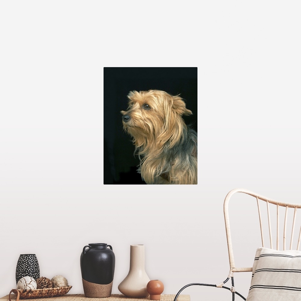 "Black and brown Yorkie left profile on black." Poster Print - Multi