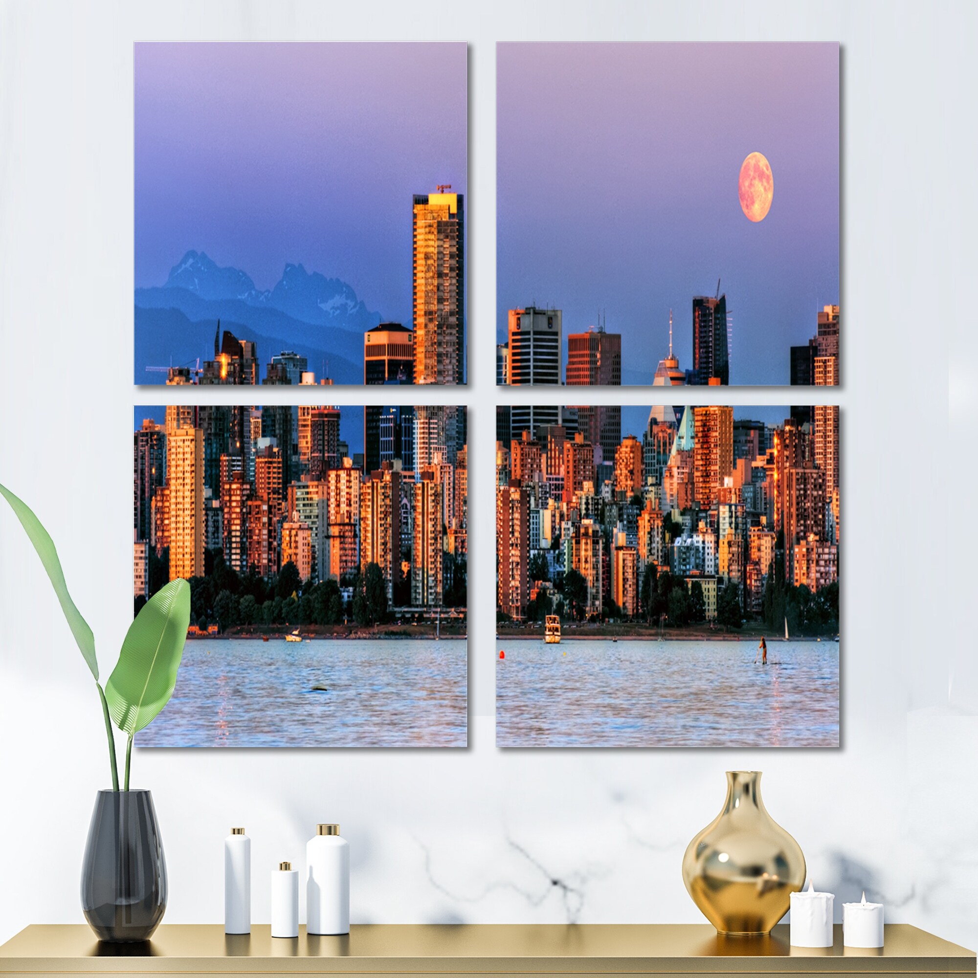 Designart 'Vancouver Skyline At Sunset II' City Vancouver Canvas Wall Art
