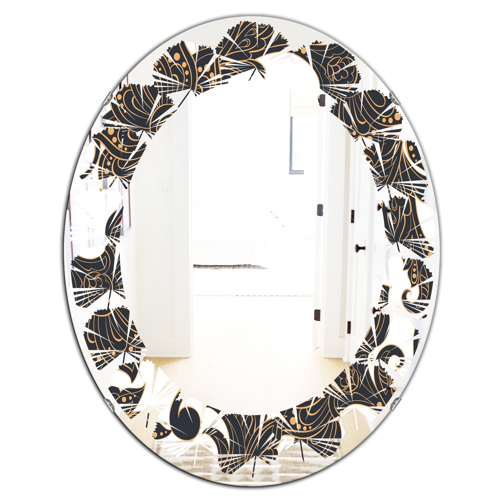 Designart 'Retro Indian Floral Batik I' Printed Modern Round or Oval Wall Mirror - Leaves