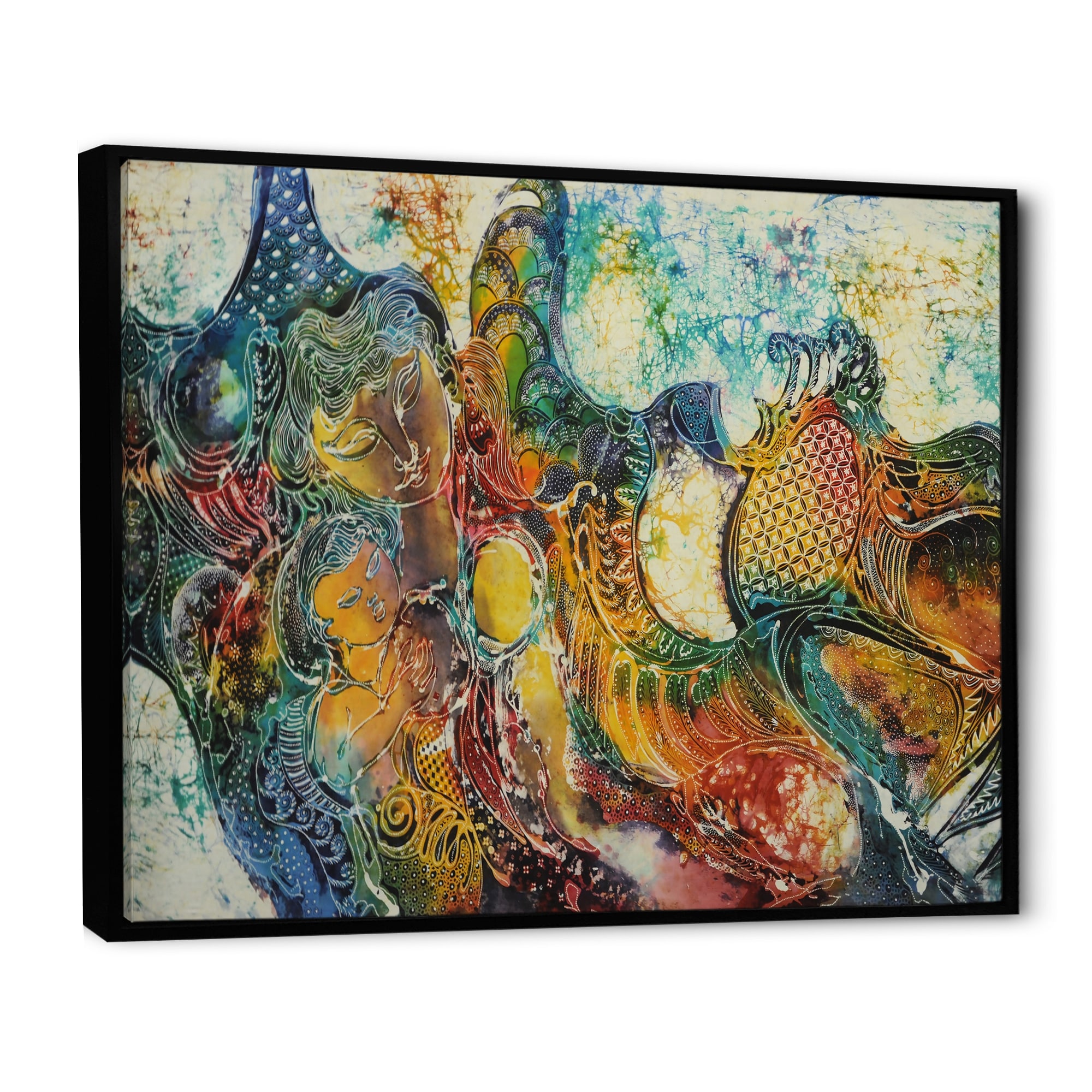 Designart "Mother With Child in Batik" Modern Framed Canvas Wall Art Print