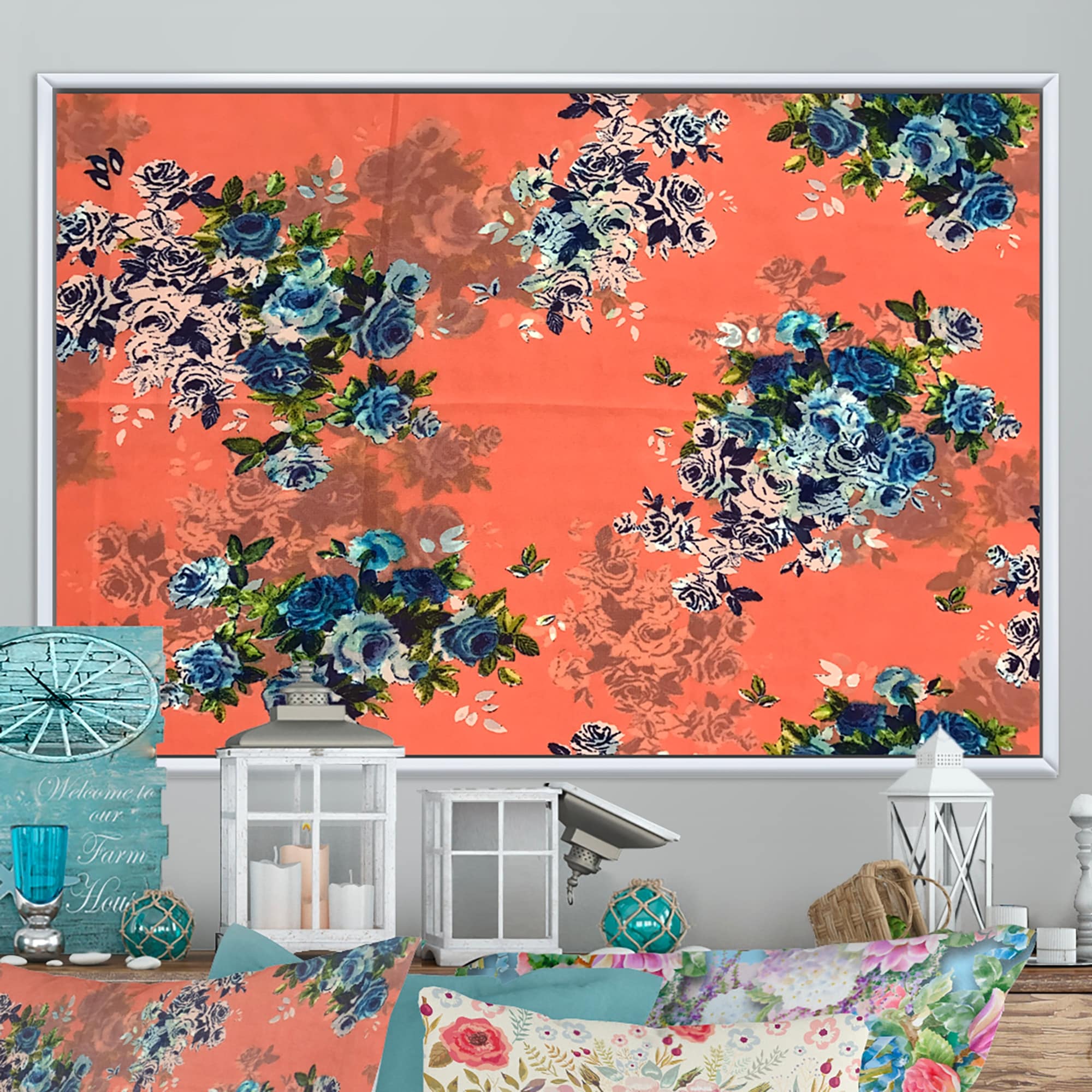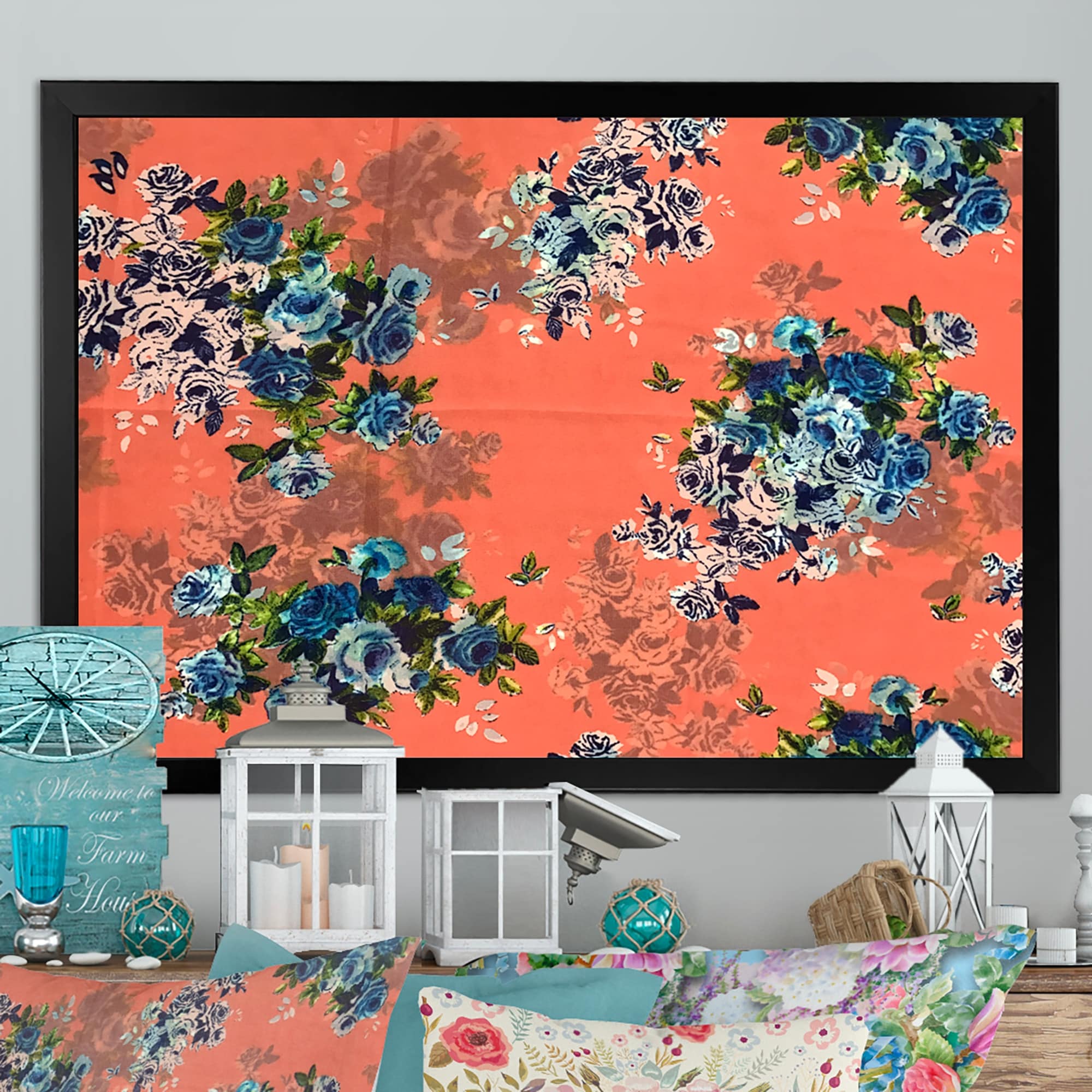 Designart "Colorful Flowers on Batik" Traditional Framed Wall Decor