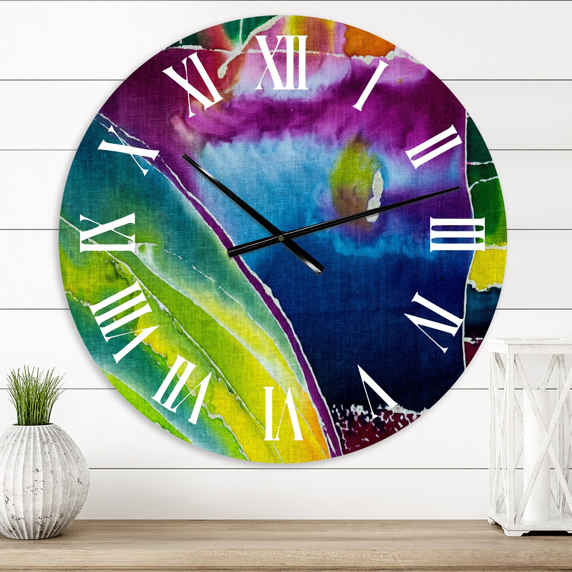 Designart 'Blue Purple and Green Batik Impression' Modern wall clock