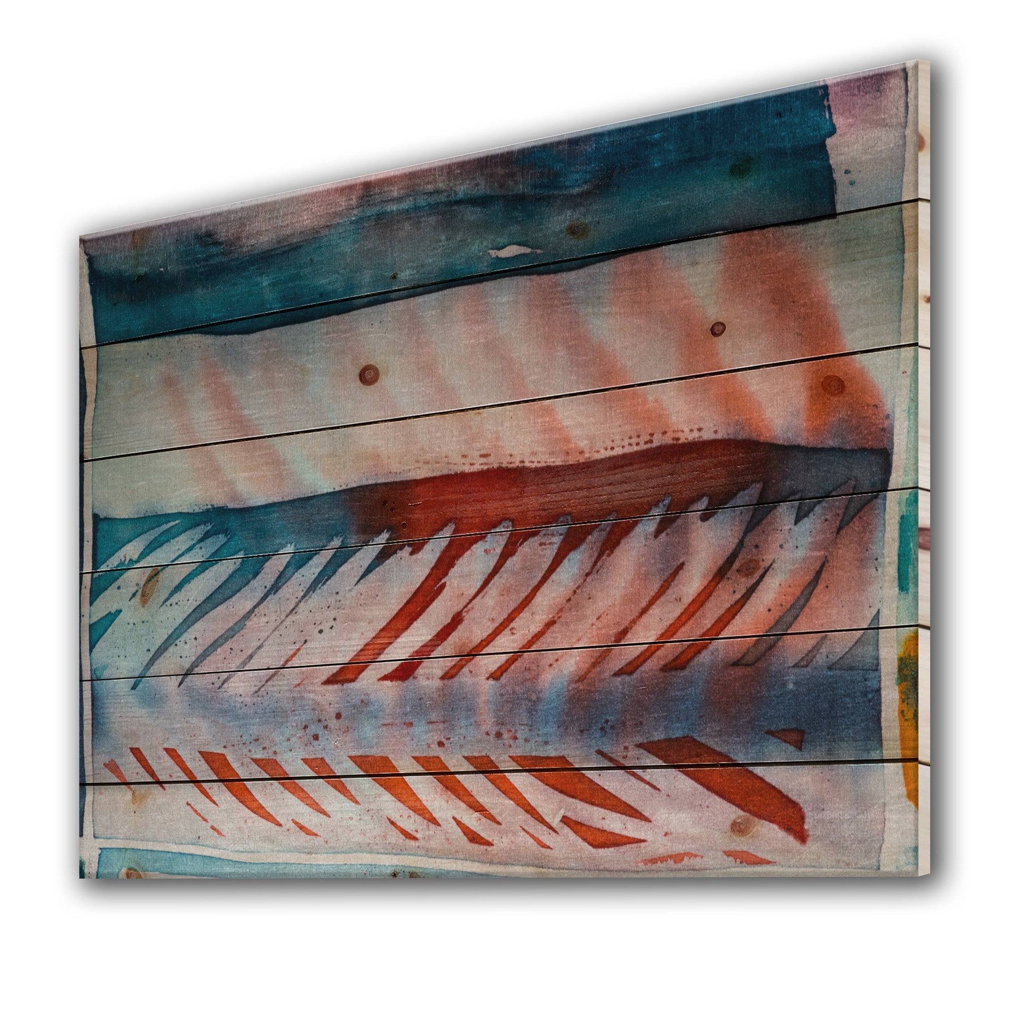 Designart 'Blue And Red Batik Impression' Modern Print on Natural Pine Wood