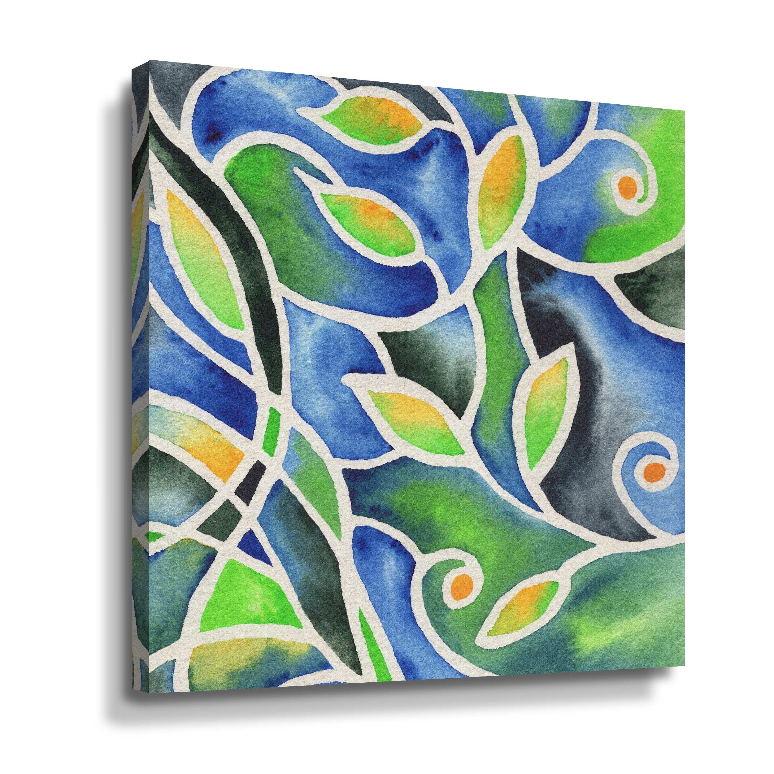 Whimsical Organic Leaves Batik Style Watercolor Pattern by Irina Sztukowski Gallery Wrapped Canvas