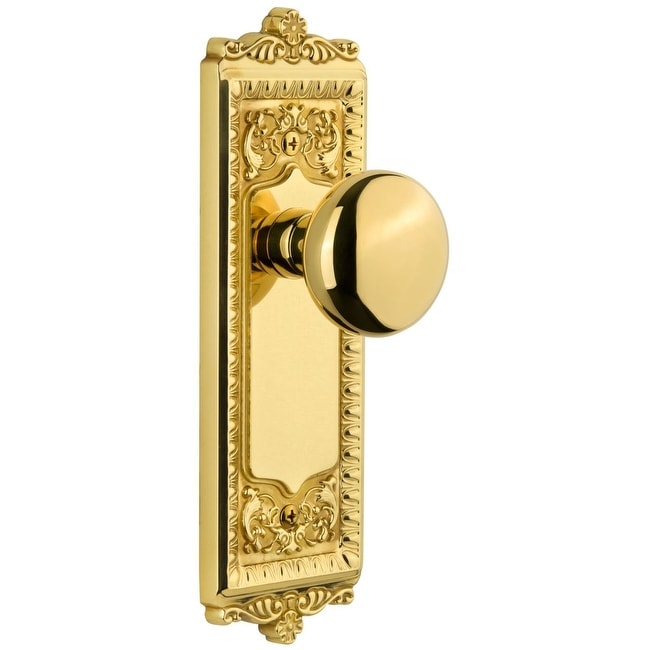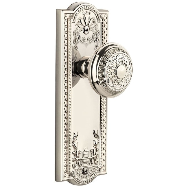 Grandeur Windsor Solid Brass Rose Passage Door Knob Set with Parthenon