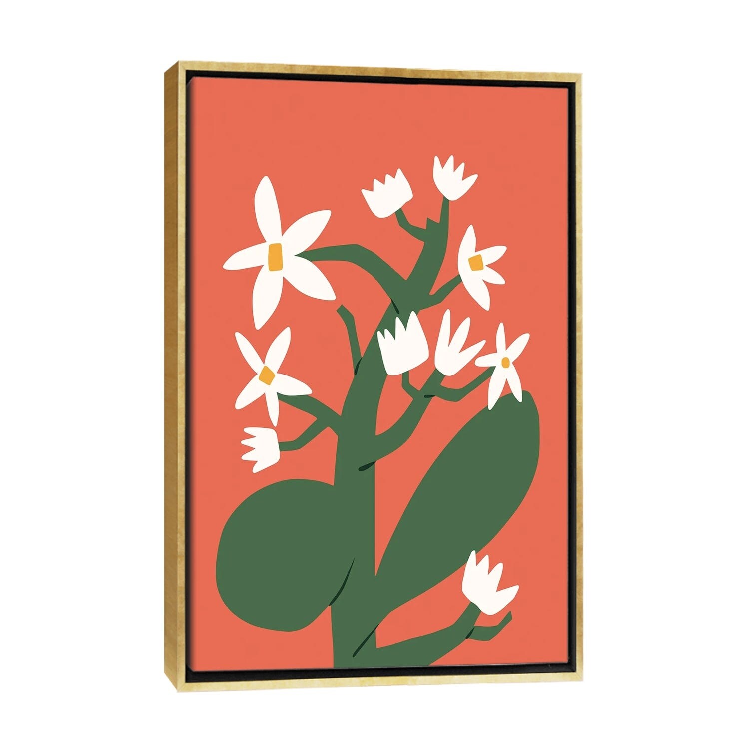 iCanvas "White Blossom in Red" by Little Dean Framed