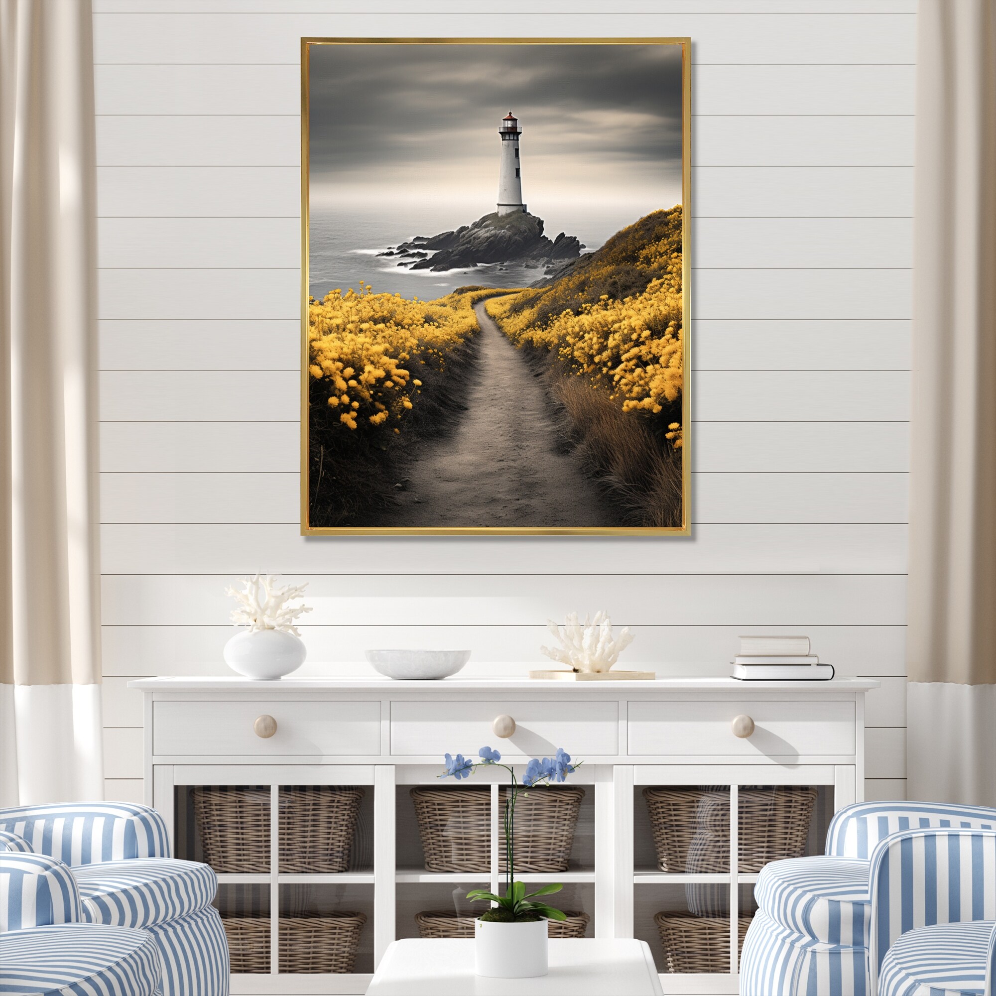 Designart "Coastal Mist" Coastal Ocean Framed Canvas Print