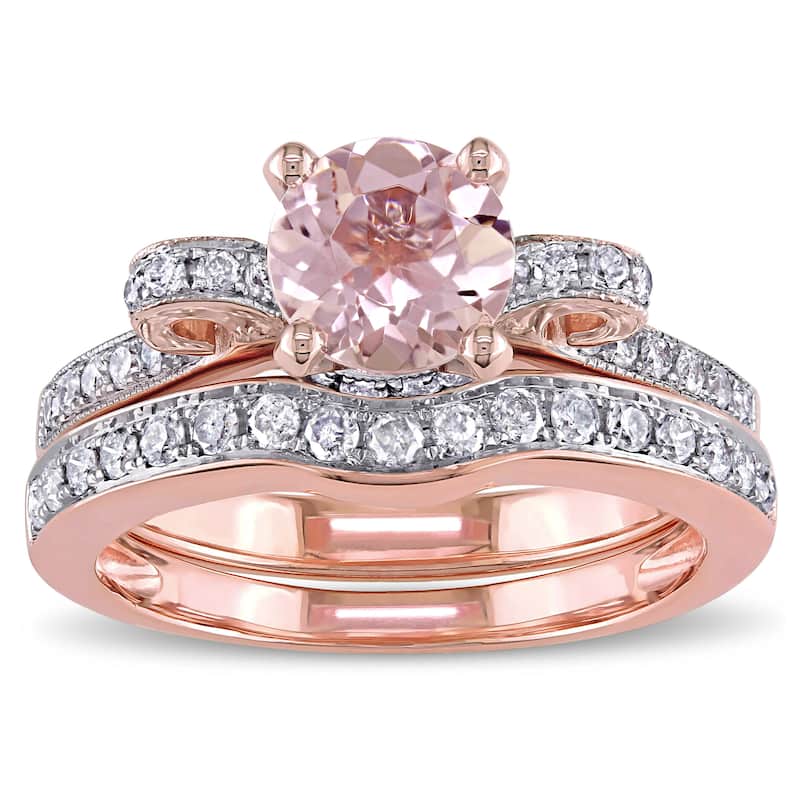 Miadora Signature Collection 14k Rose Gold Morganite and 1/2ct TDW Diamond 2-Piece Bridal Ring Set
