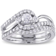 Miadora Signature Collection 14k White Gold 1ct TDW Diamond Crossover 3-Stone Bridal Ring Set