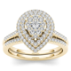 De Couer IGI Certified 14k Yellow Gold 1/2ct TDW Diamond Cluster Pear-Shaped Frame Bridal Set