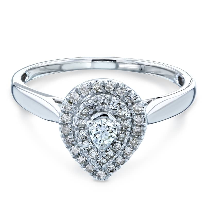 Annello by Kobelli 14k White Gold 1/5 Carat TDW Pear Double Halo Diamond Ring
