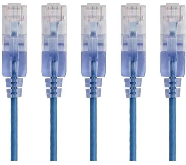 Monoprice 5-Pack, SlimRun Cat6A Ethernet Network Patch Cable, 1ft Blue