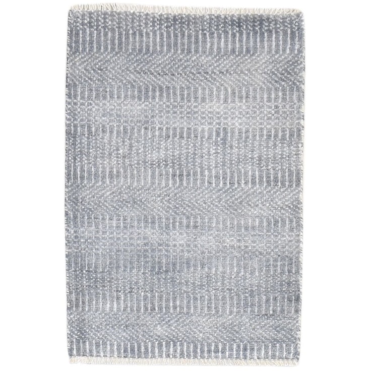 One of a Kind Hand-Knotted Modern 2' x 3' Trellis Wool Grey Rug - 2' x 3'