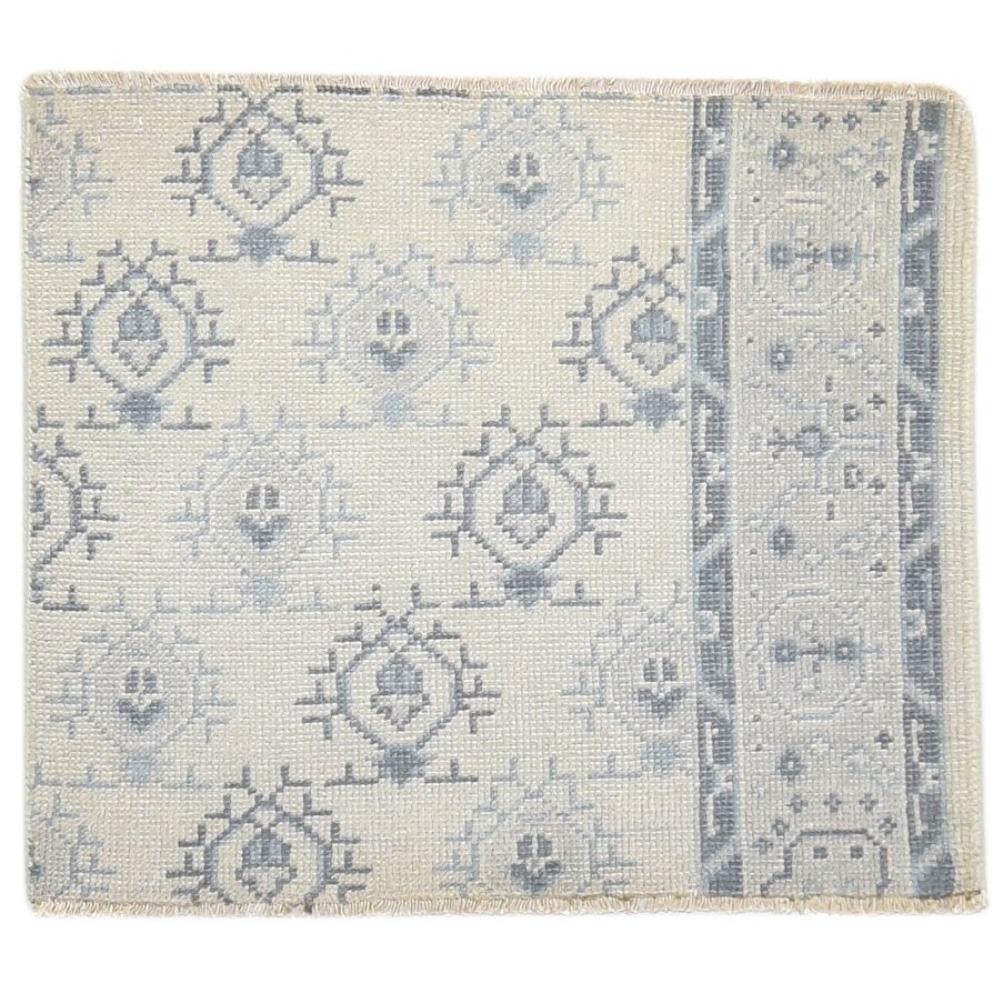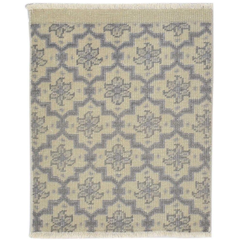 One of a Kind Hand-Knotted Modern & Contemporary 2' x 3' Trellis Wool Ivory Rug - 2'0"x2'6"