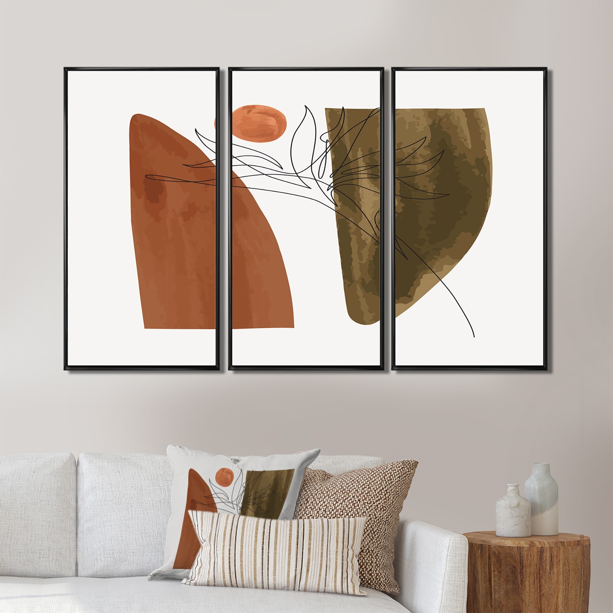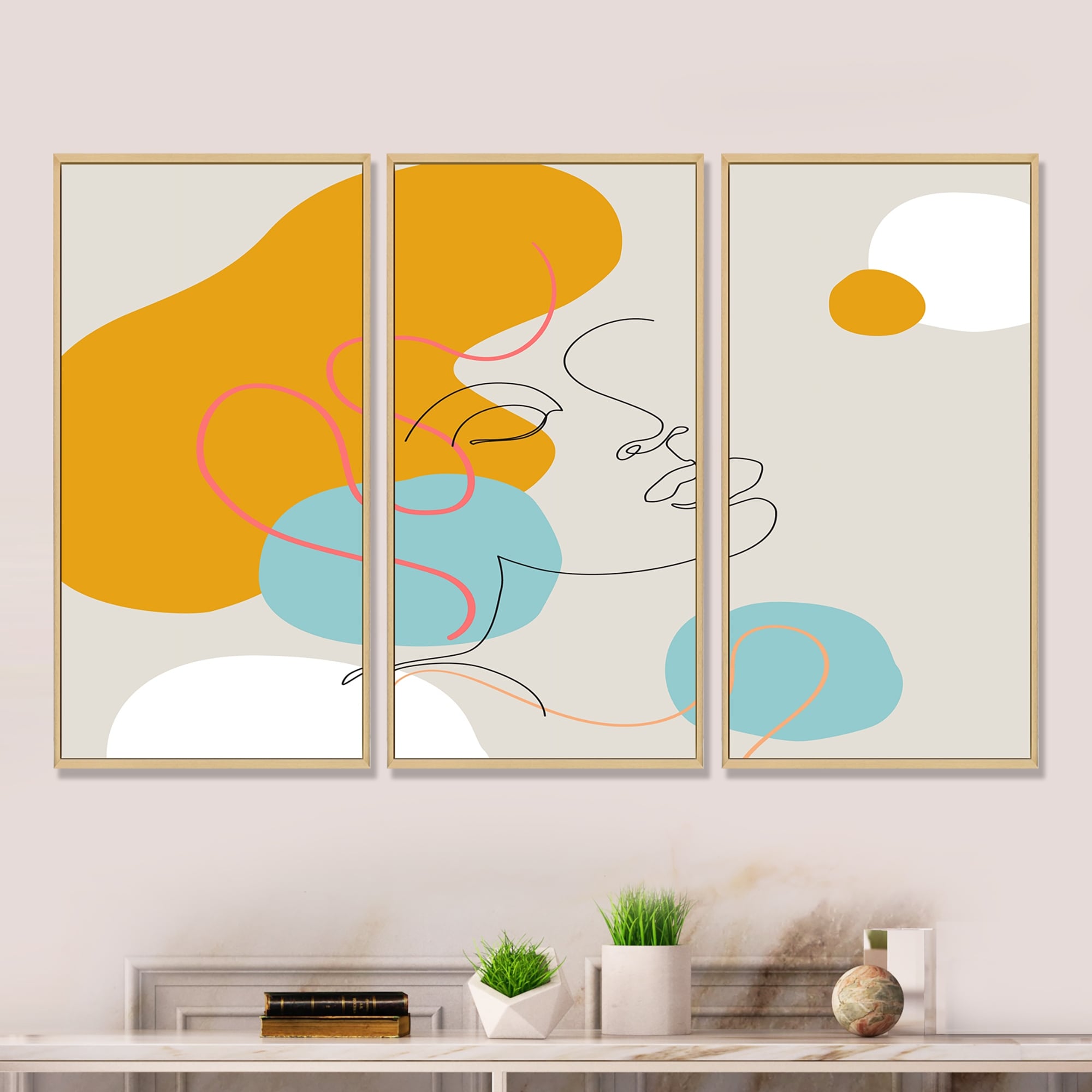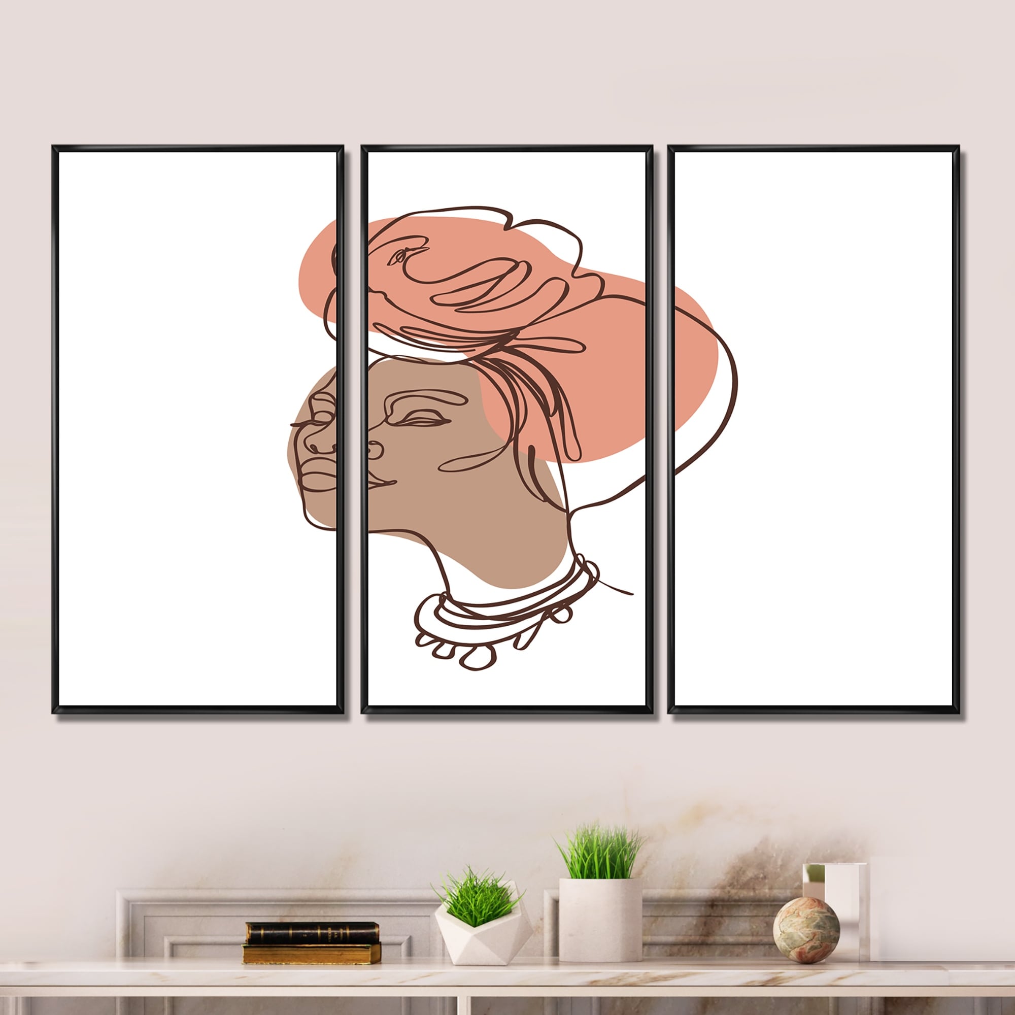 Designart "One Line Art Portrait of Woman in Terracotta Tones" Modern Framed Wall Art Set of 3 - 4 Colors of Frames