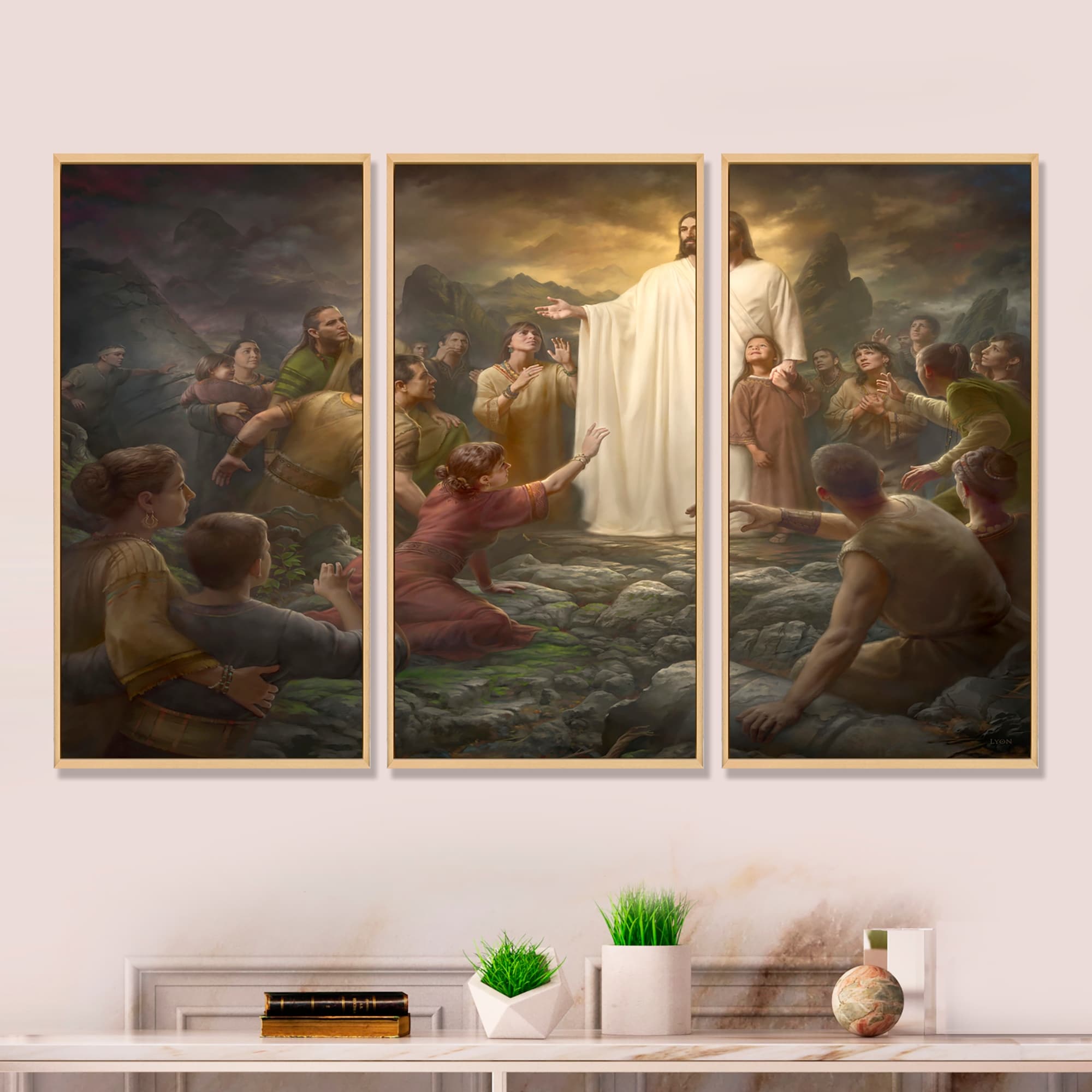 Designart "One Shepherd" Spiritual Framed Artwork Set of 3 - 4 Colors of Frames
