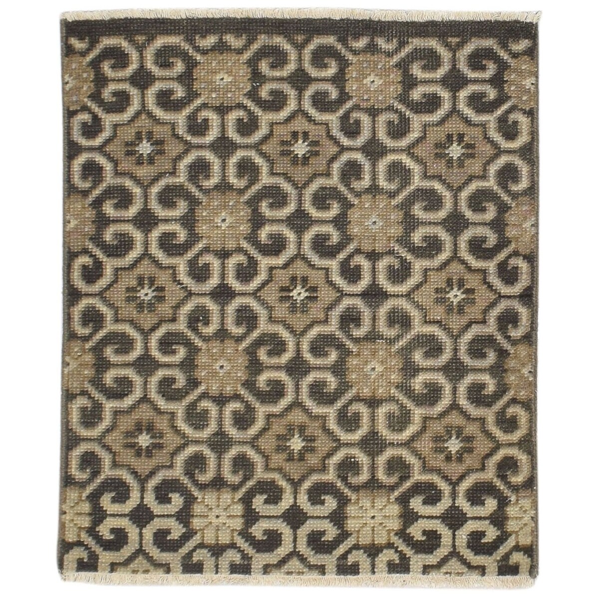 One of a Kind Hand-Knotted Modern 2' x 3' Trellis Wool Brown Rug - 2' x 3'