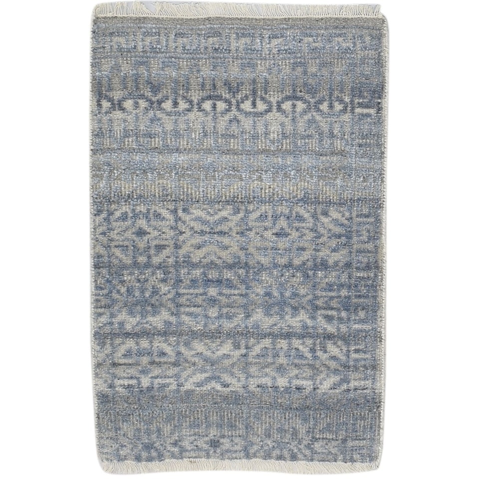 One of a Kind Hand-Knotted Modern & Contemporary 2' x 3' Trellis Wool Blue Rug - 2'1"x3'0"
