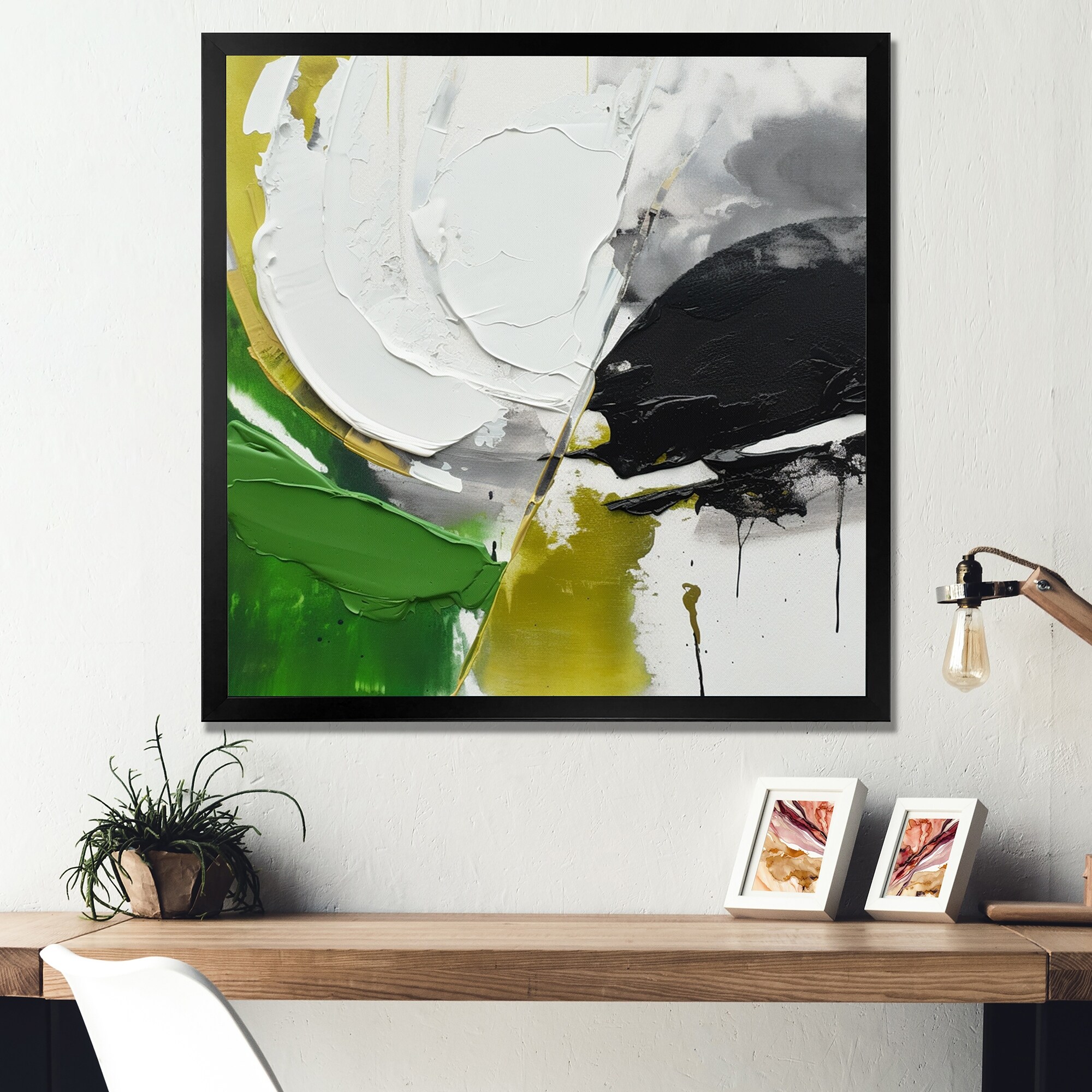 Designart "Green And Cream Essence of Modernity I" Abstract Framed Canvas Wall Art