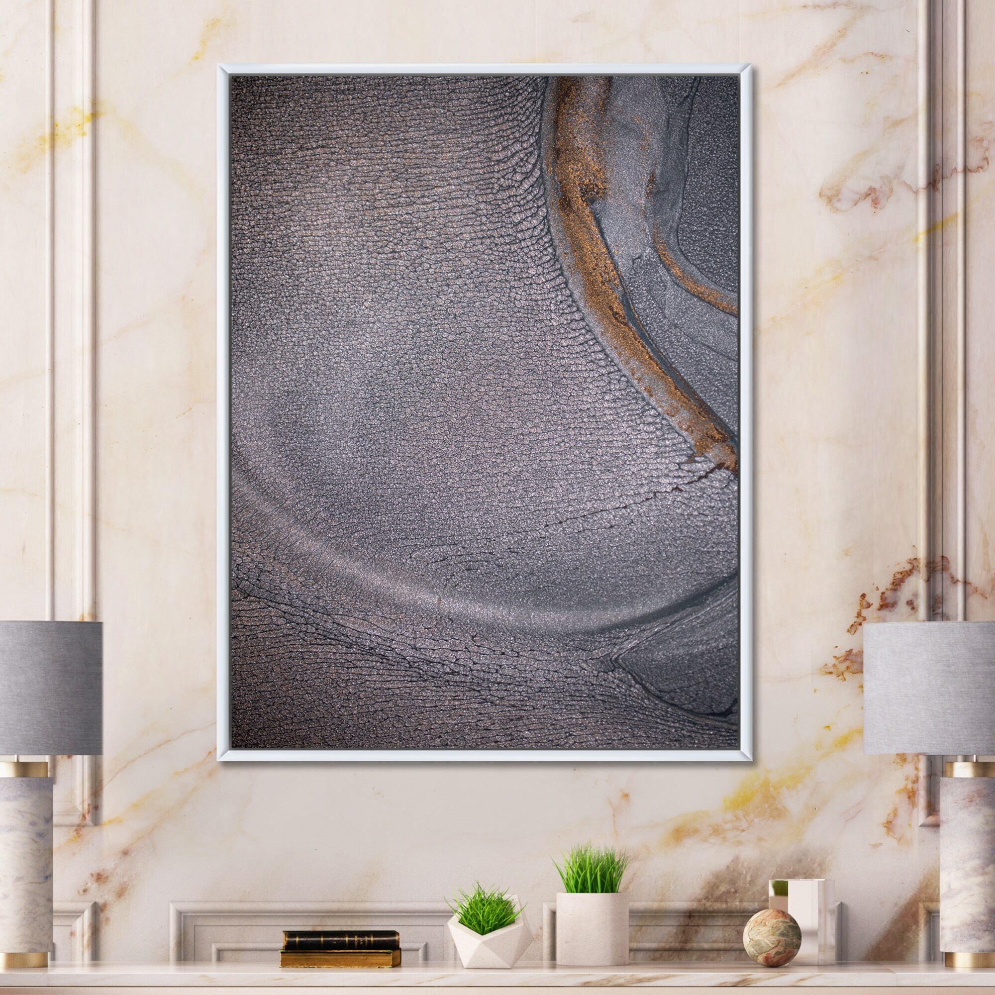 Designart "Abstract Geode Waves Grey III" Abstract Framed Canvas Art Print