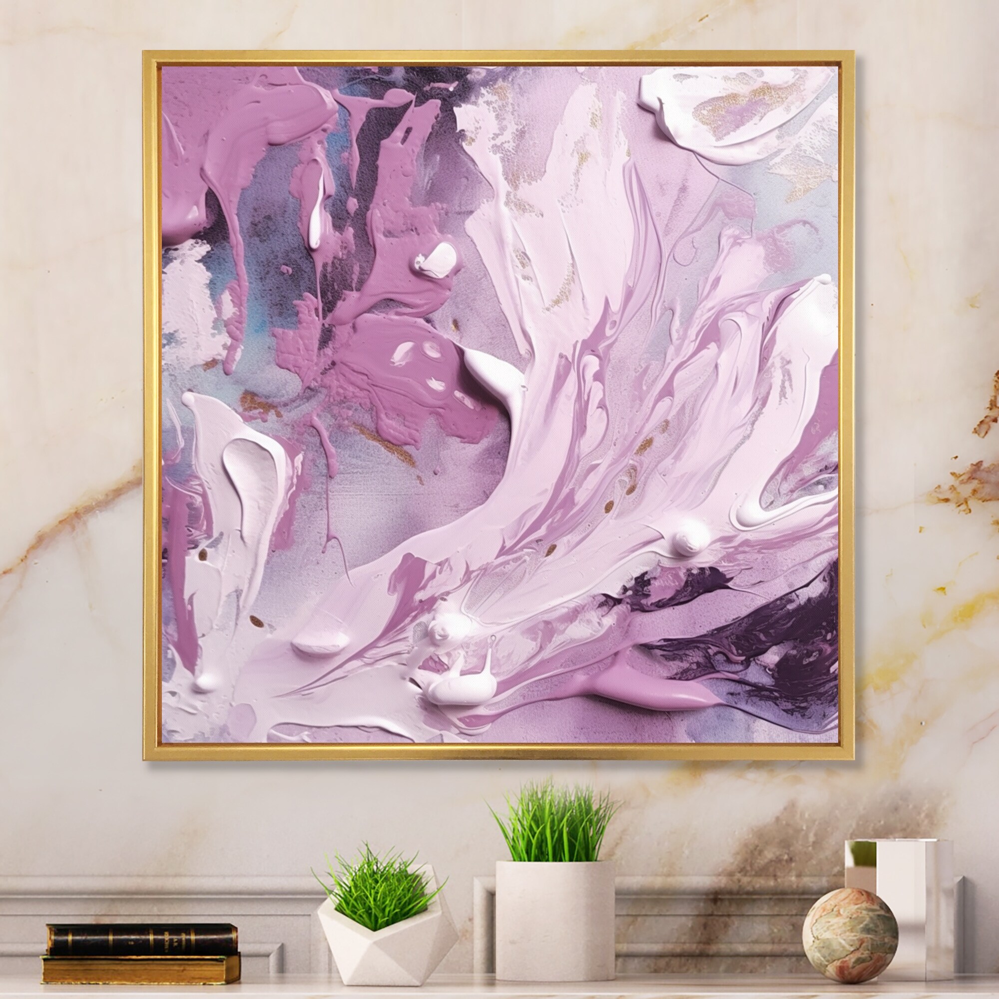 Designart "Pink And Blue Transcendent Beauty in Marble Art Ii" Abstract Marble Framed Wall Art for Living Room